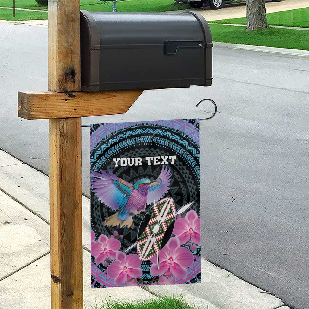 Personalised Kenya Lilac Breasted Roller Garden Flag Orchid Flower - African Pattern