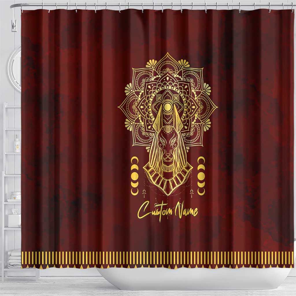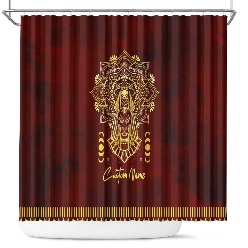 Personalized Anubis Shower Curtain Ancient Egyptian Pattern In Red