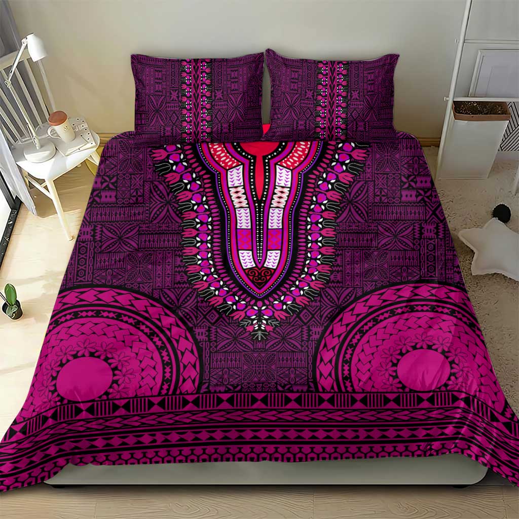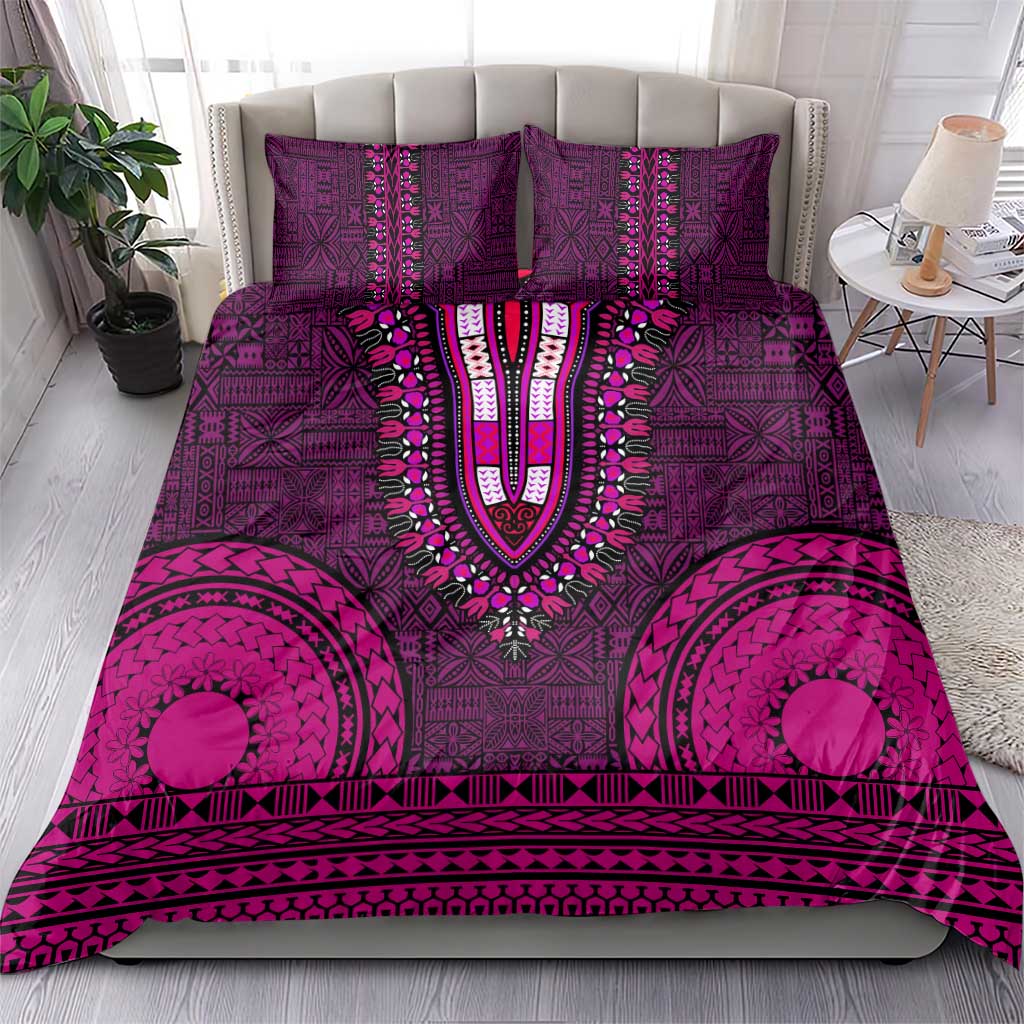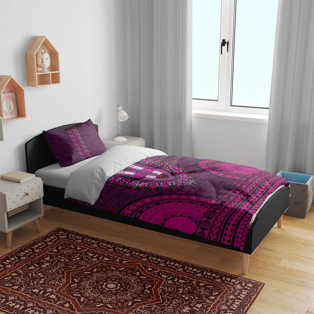 Pink Dashiki and Tapa Pattern Bedding Set Africa-Polynesia Together Culture