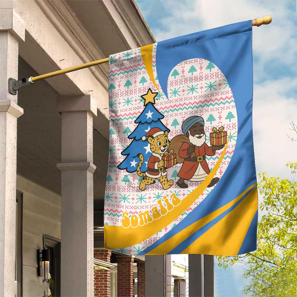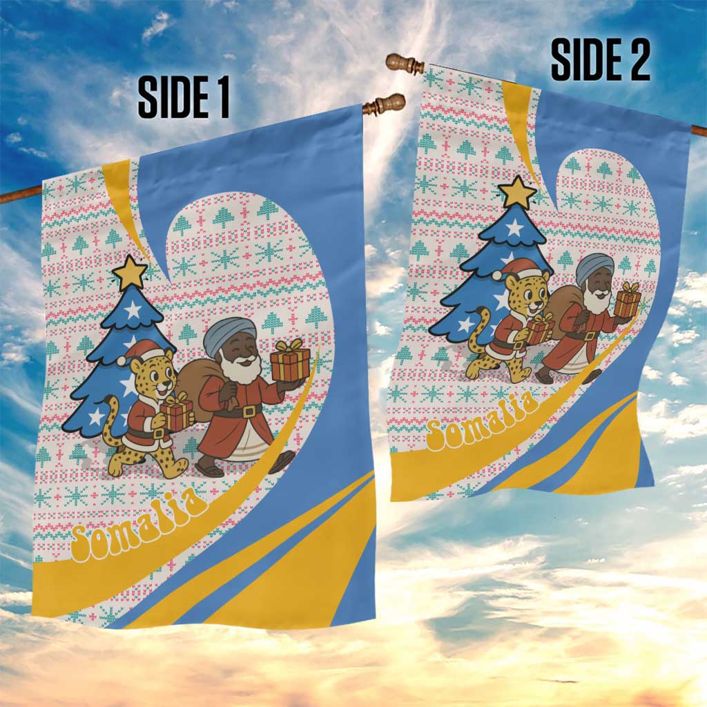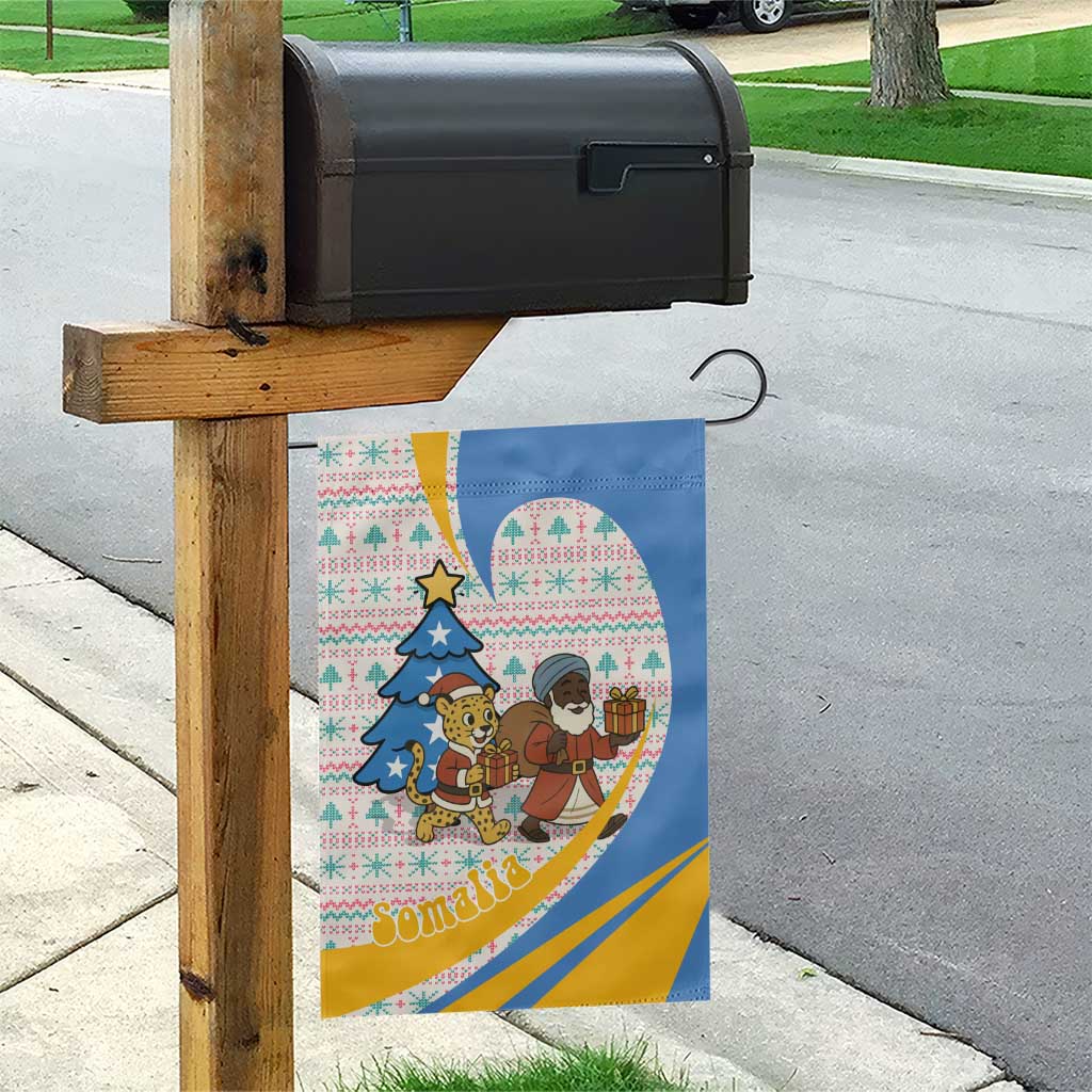 Somalia Christmas Garden Flag Santa Cheetah Christmas Tree Village Scene and Festive Snowflake