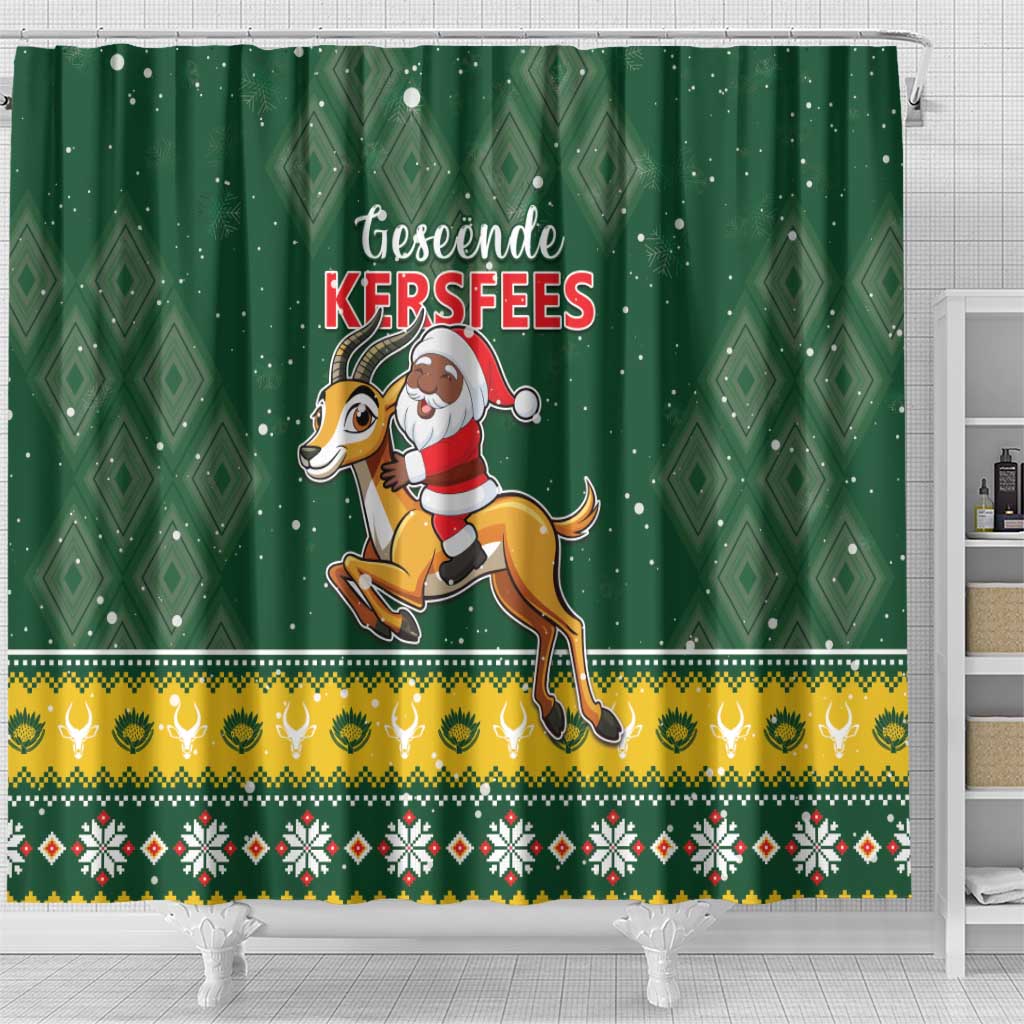 South Africa Christmas Shower Curtain Funny Santa Riding Springbok