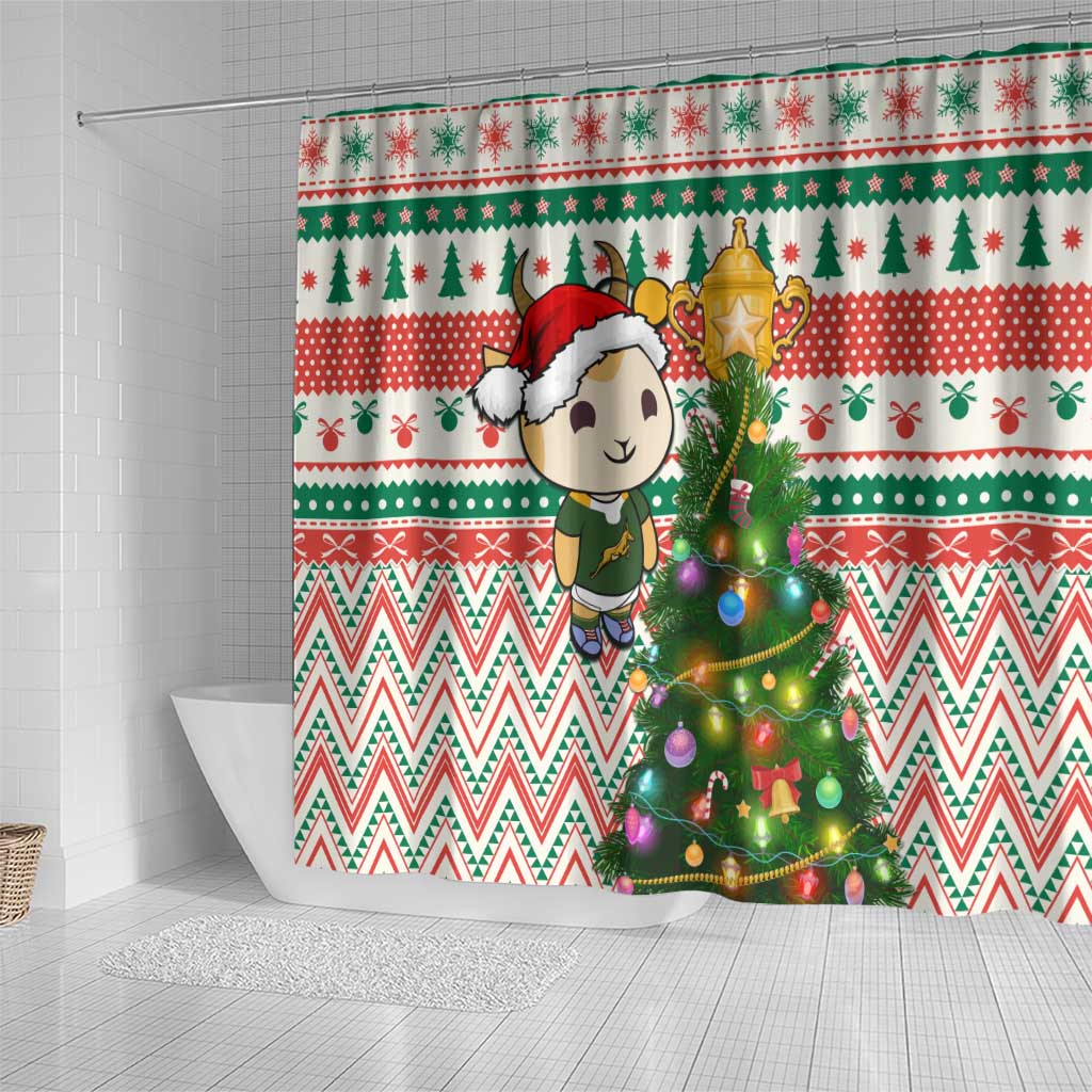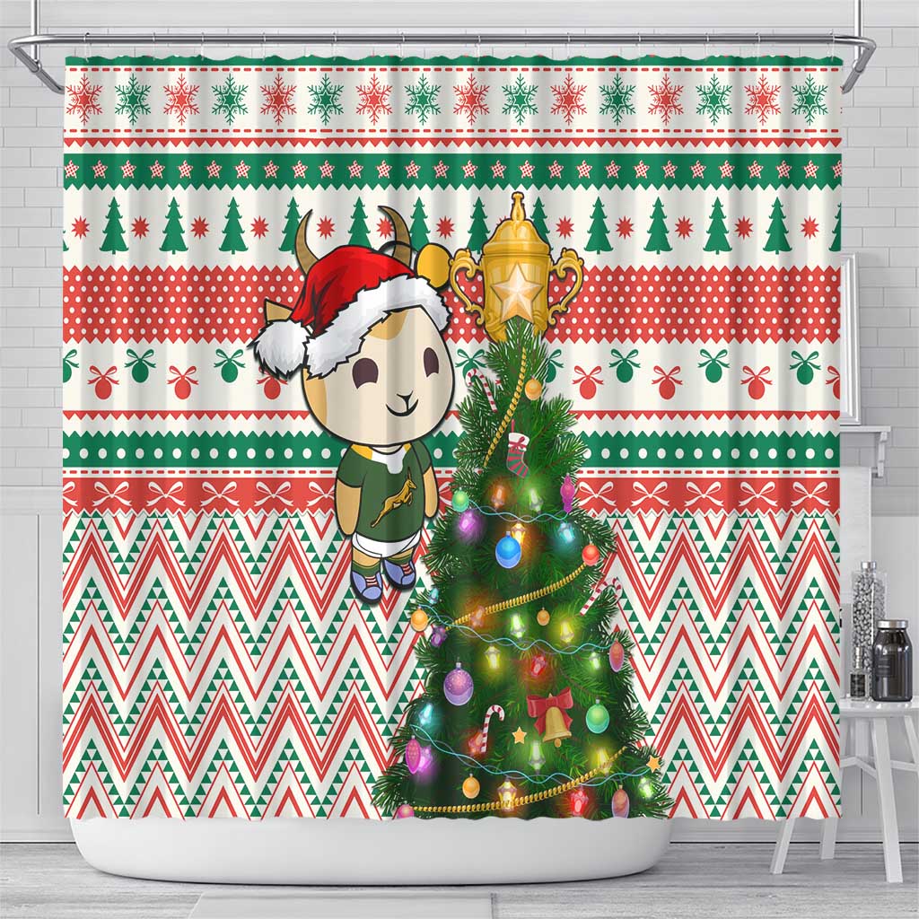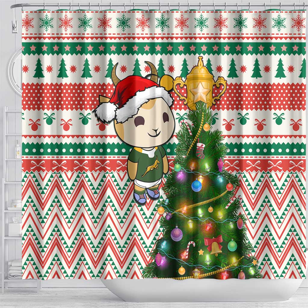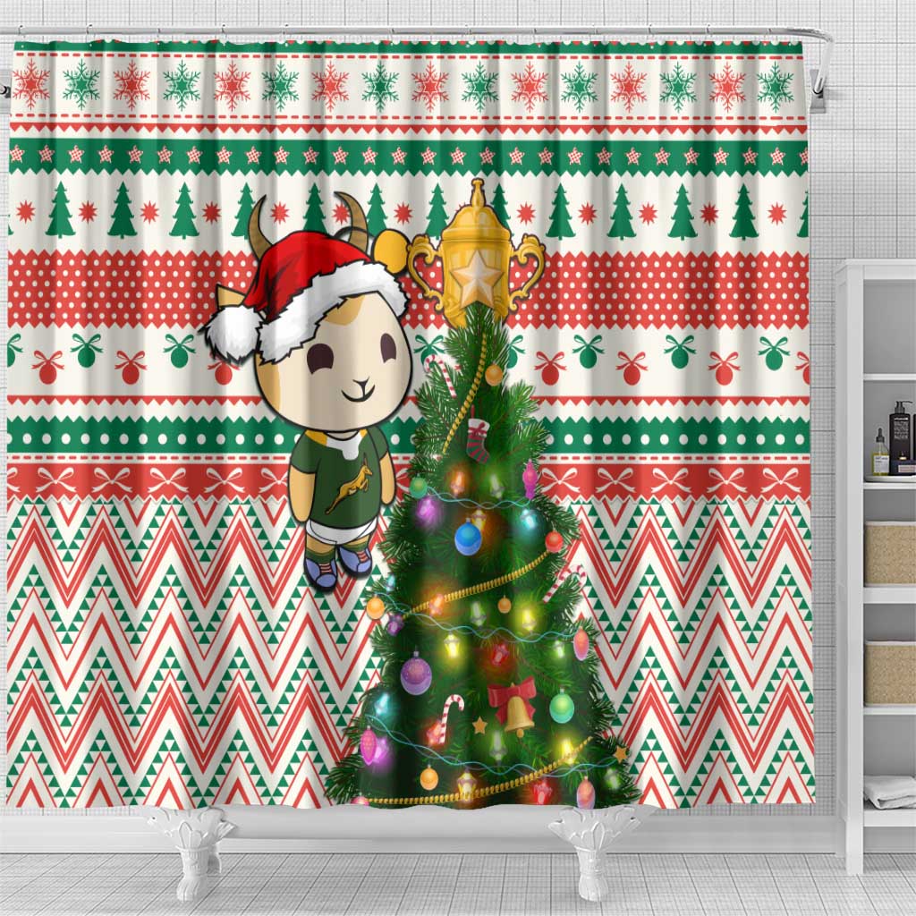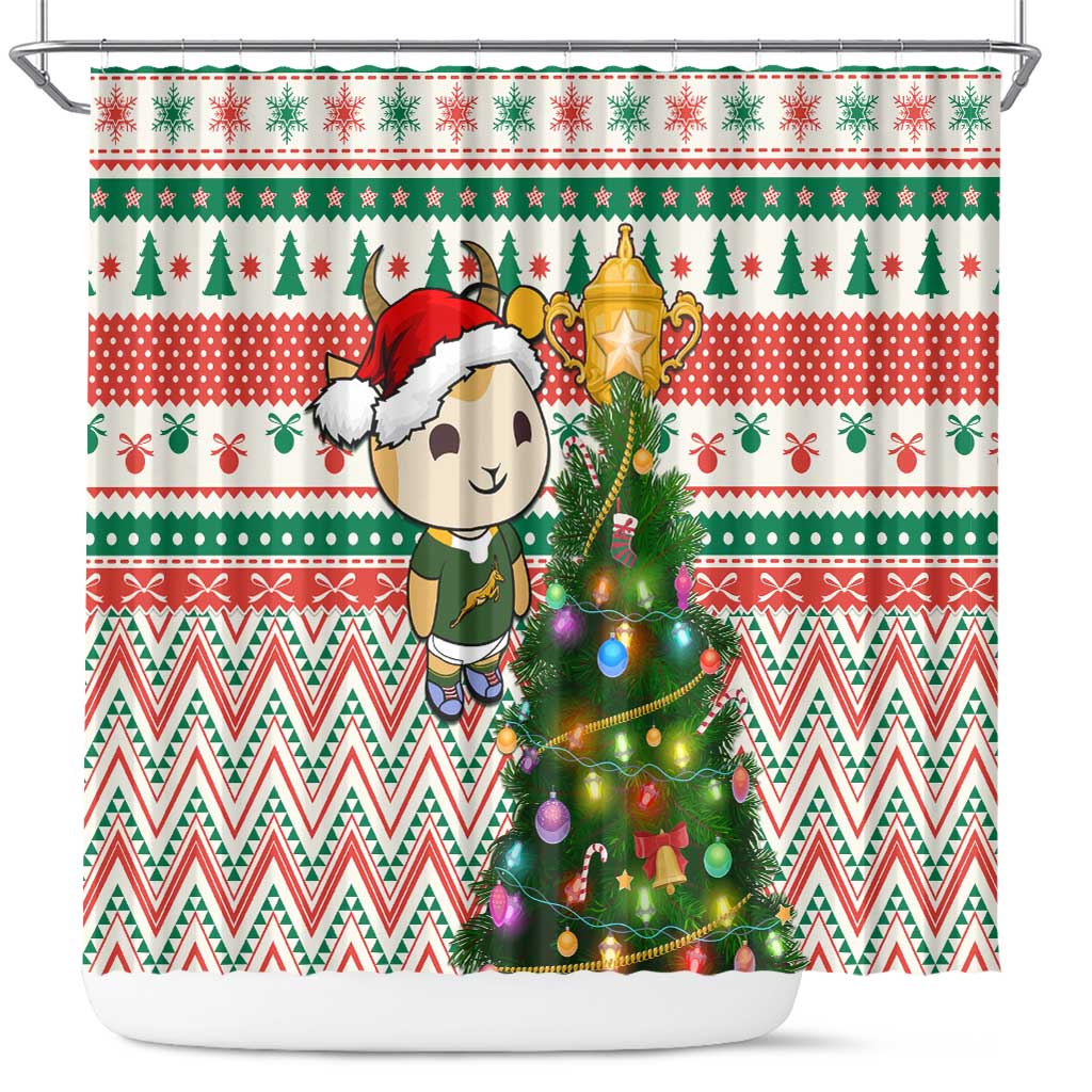 South Africa Rugby Christmas Shower Curtain with Cute Springbok and Christmas Tree