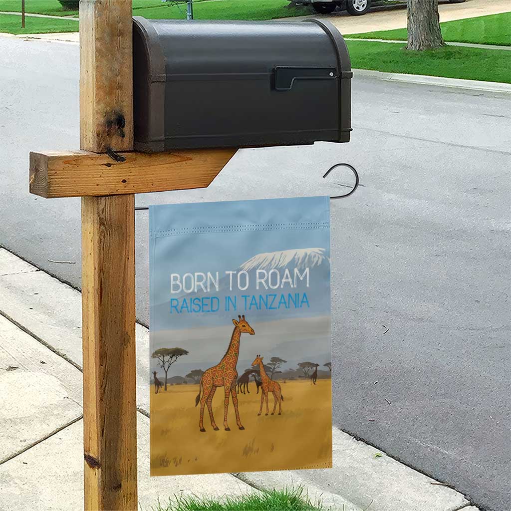 Tanzania Safari Giraffe Garden Flag - Tribal Patterns and Mount Kilimanjaro Scene