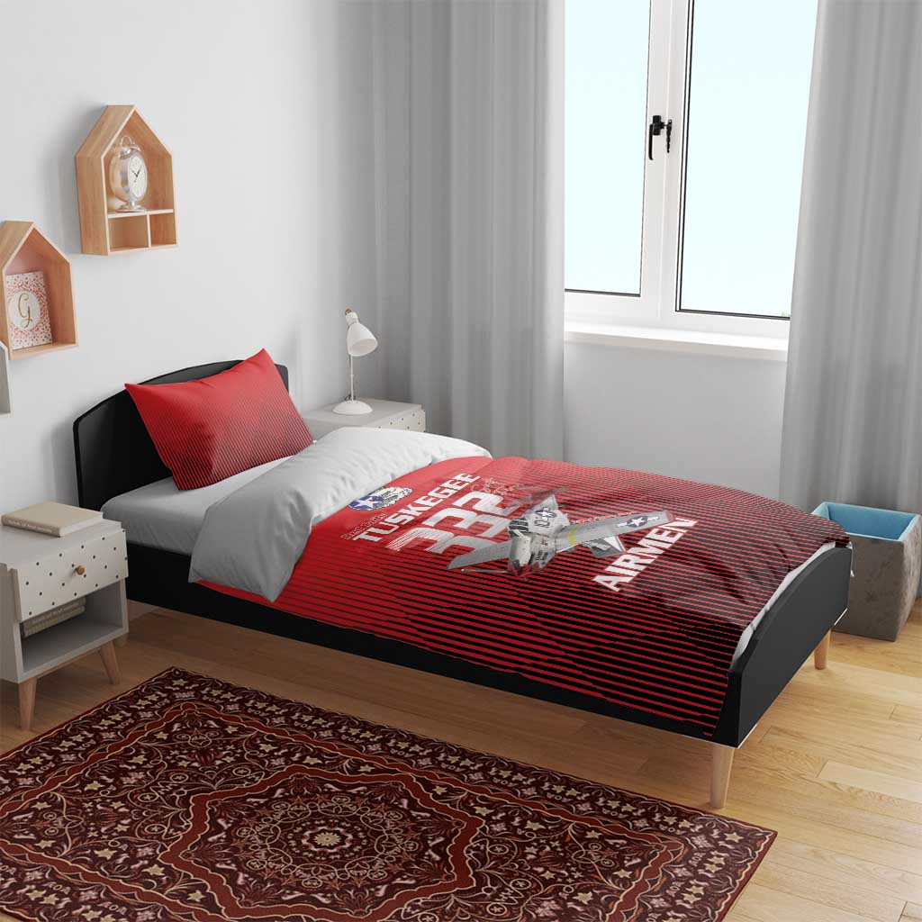 Tuskegee Red Tails Airmen Bedding Set 332nd Fighter Group - Black Red LT15