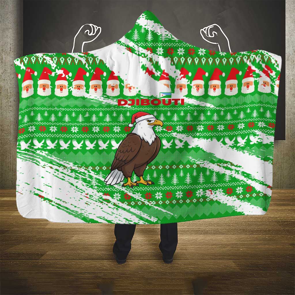 Djibouti Christmas Hooded Blanket Santa Eagle Doves Trees and Green Snowflake