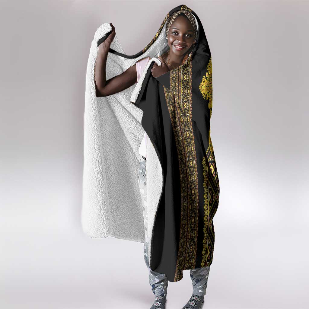 Habesha Motifs Ethiopia Hooded Blanket Tilet Black Gold