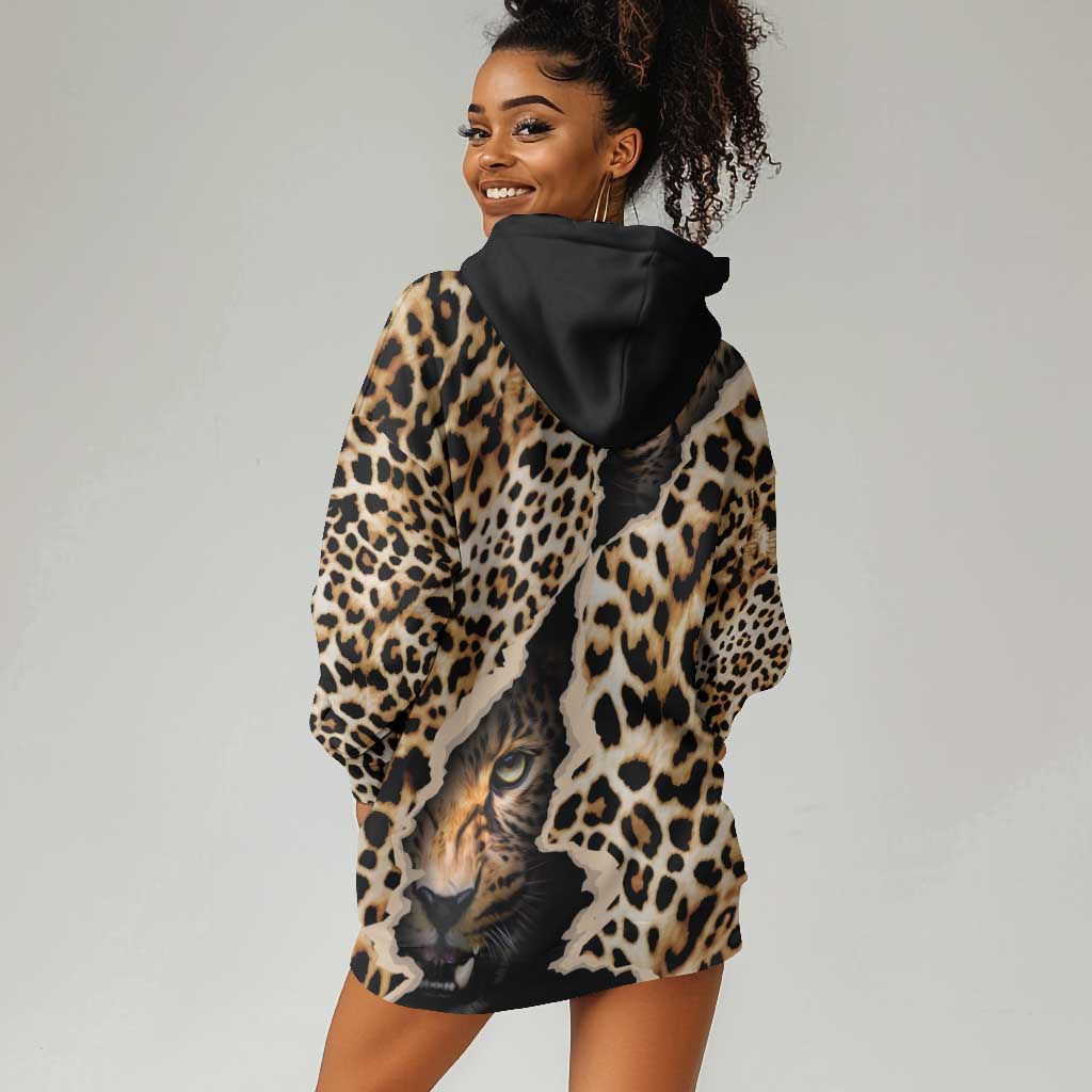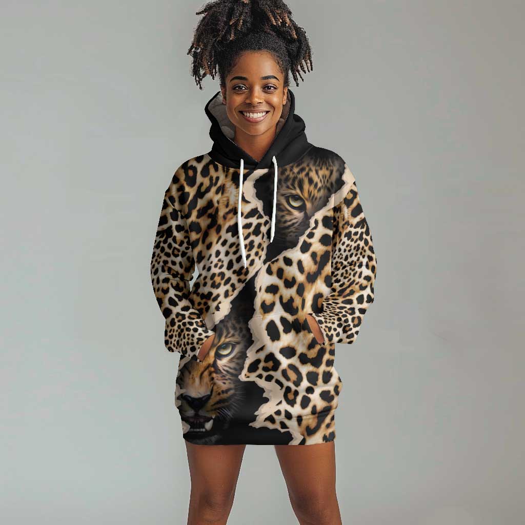 Afro Leopard Skin Pattern Hoodie Dress Version 02