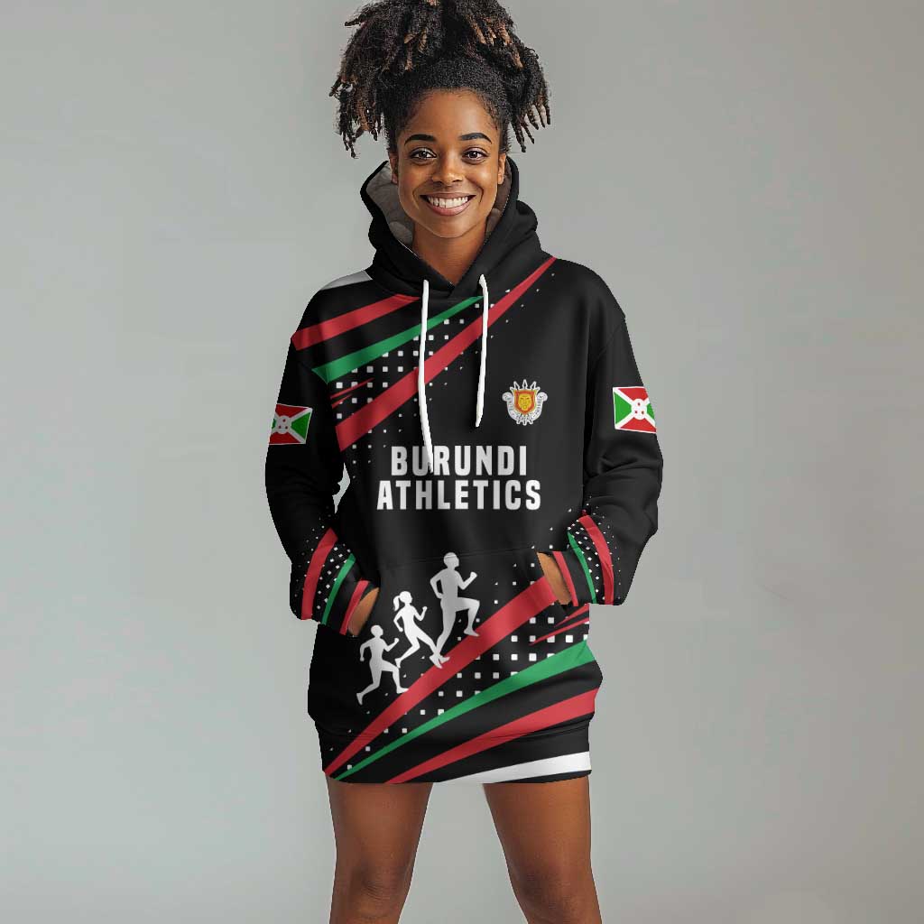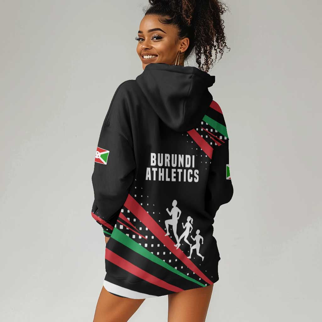 Burundi Hoodie Dress with Athletics Runners Black Red Green Flag Spirit