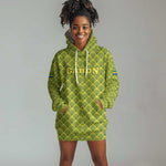 Gabon Tribal Pattern Hoodie Dress - National Flag Colors and Bold Text Design