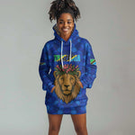 Tanzania Simba Lion Hoodie Dress - Floral Crown and Blue Mosaic Design