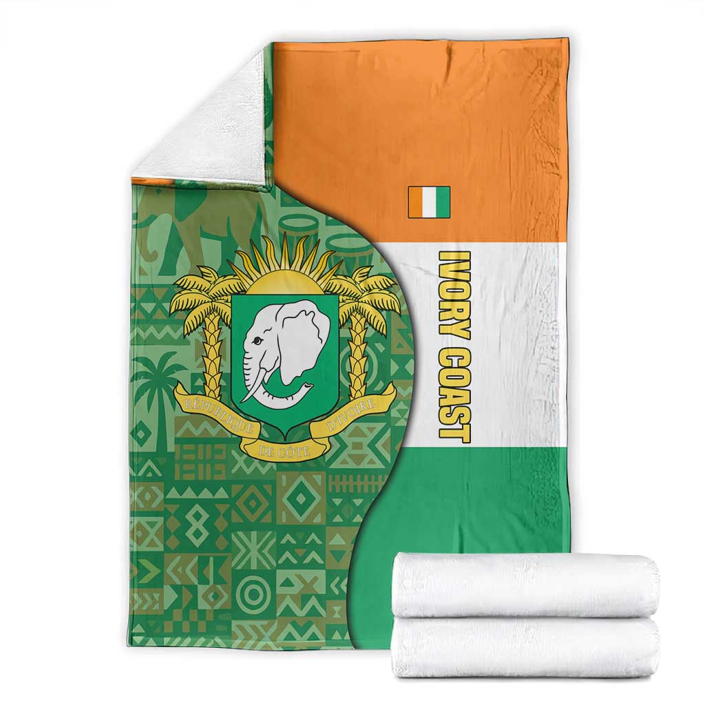 Ivory Coast Blanket Elephant Crest and Tribal Pattern