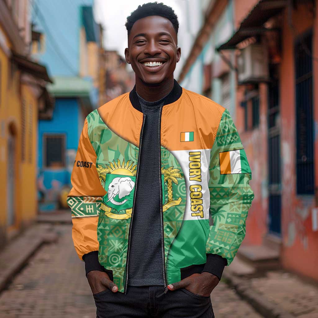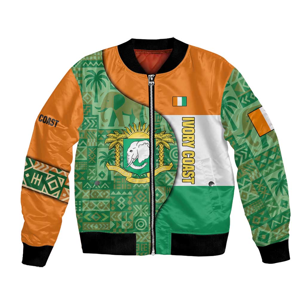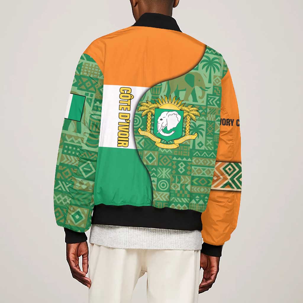 Ivory Coast Bomber Jacket Elephant Crest and Tribal Pattern