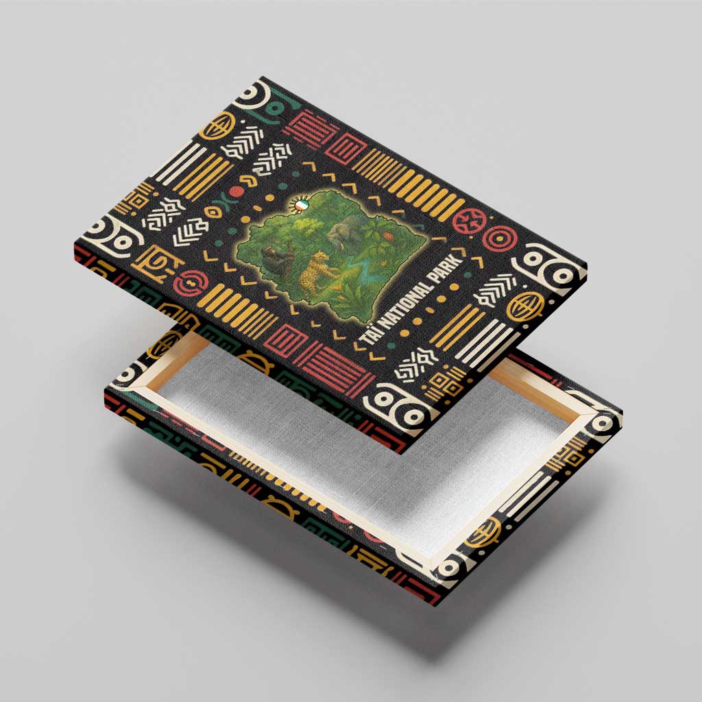 Ivory Coast Canvas Wall Art Tai National Park Wildlife Map
