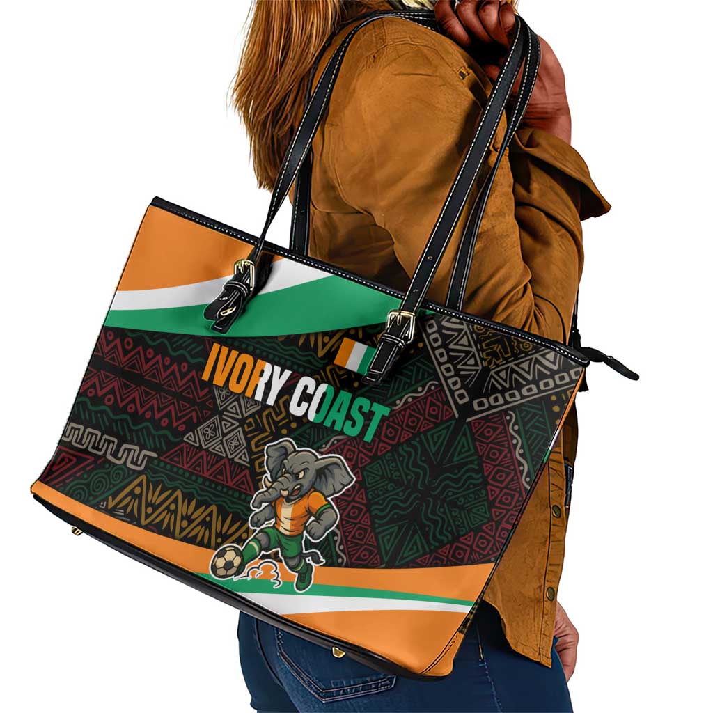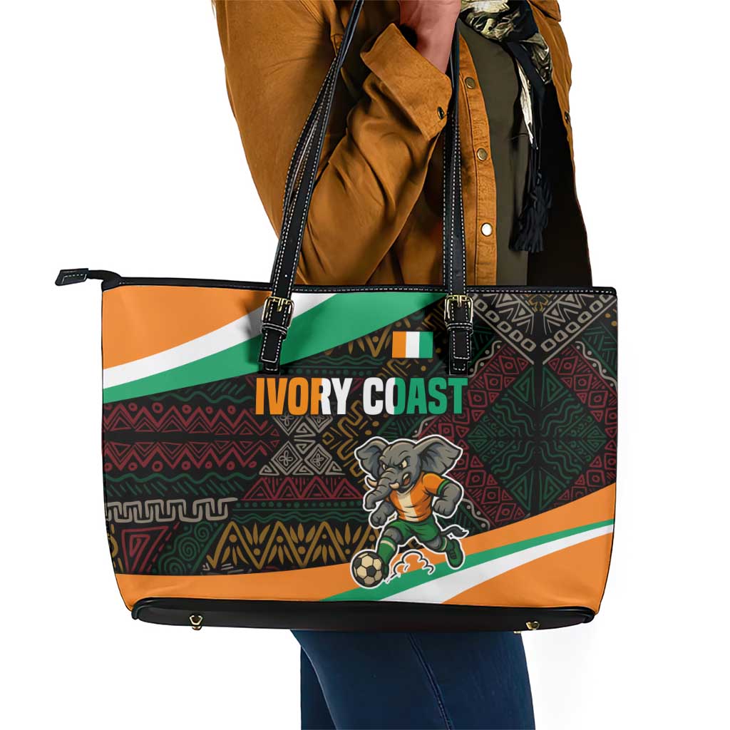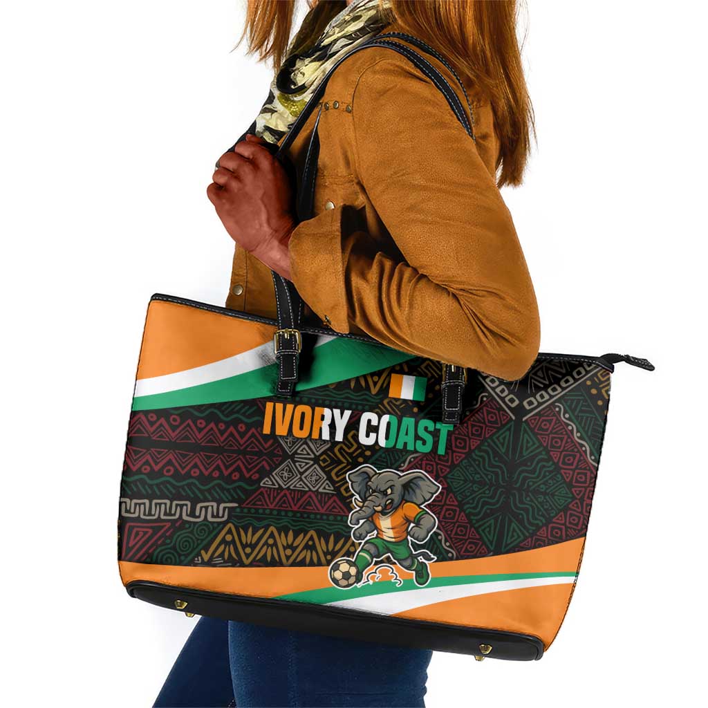 Ivory Coast Elephants Football Leather Tote Bag Soccer with Tribal Pattern