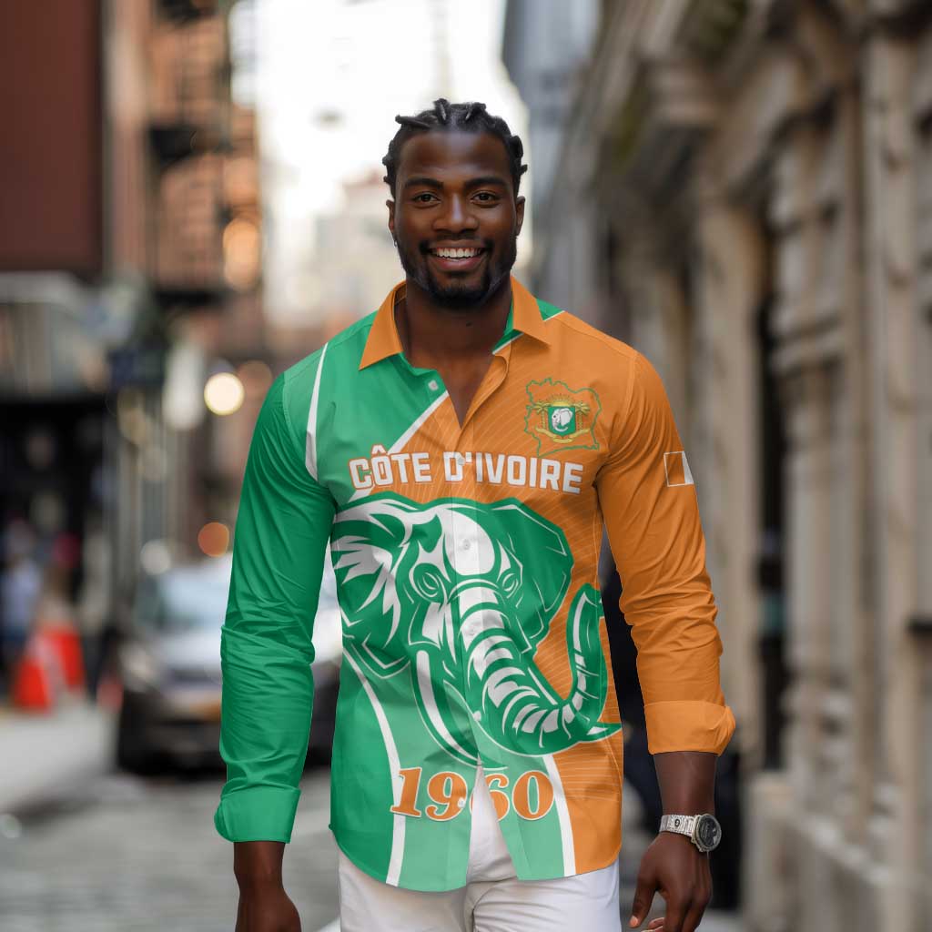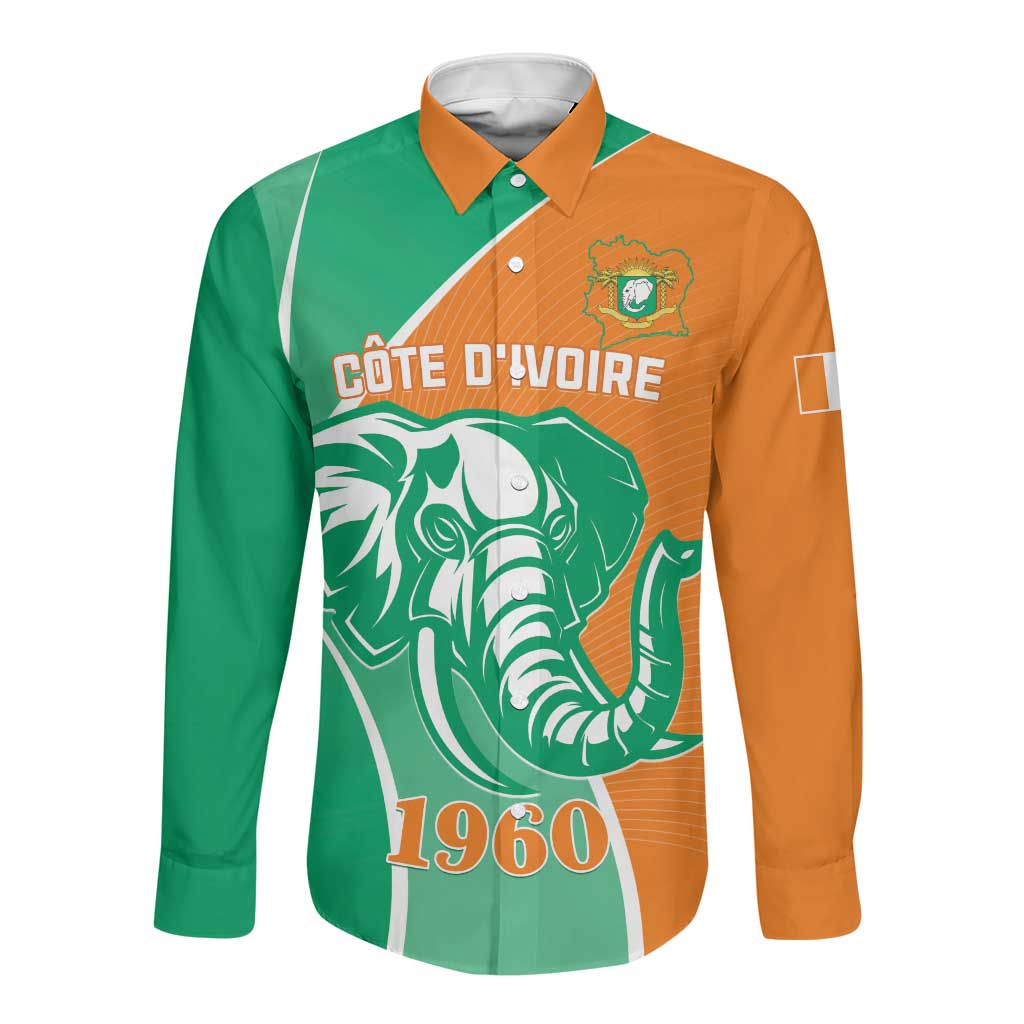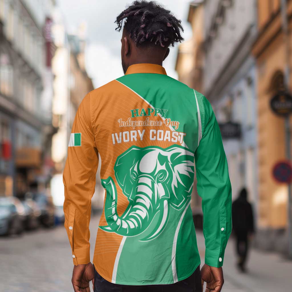 Ivory Coast Independence Day Long Sleeve Button Shirt Cote d Ivoire Elephant