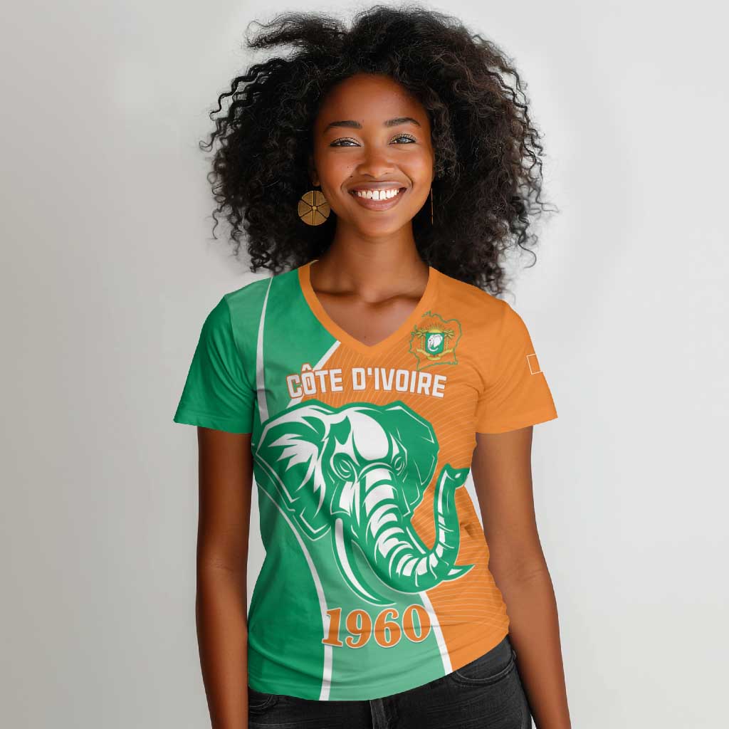 Ivory Coast Independence Day Women V-Neck T-Shirt Cote d Ivoire Elephant