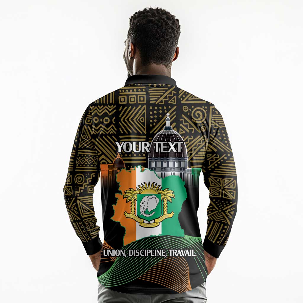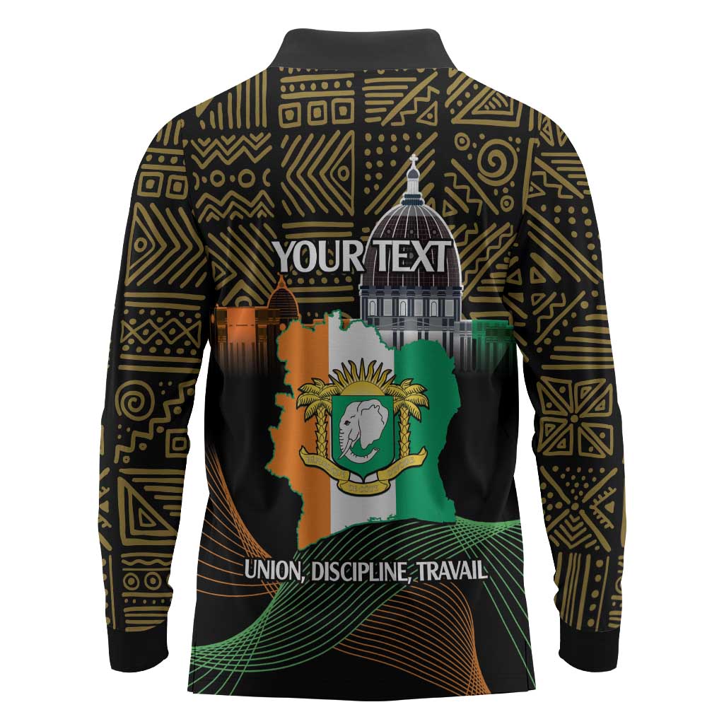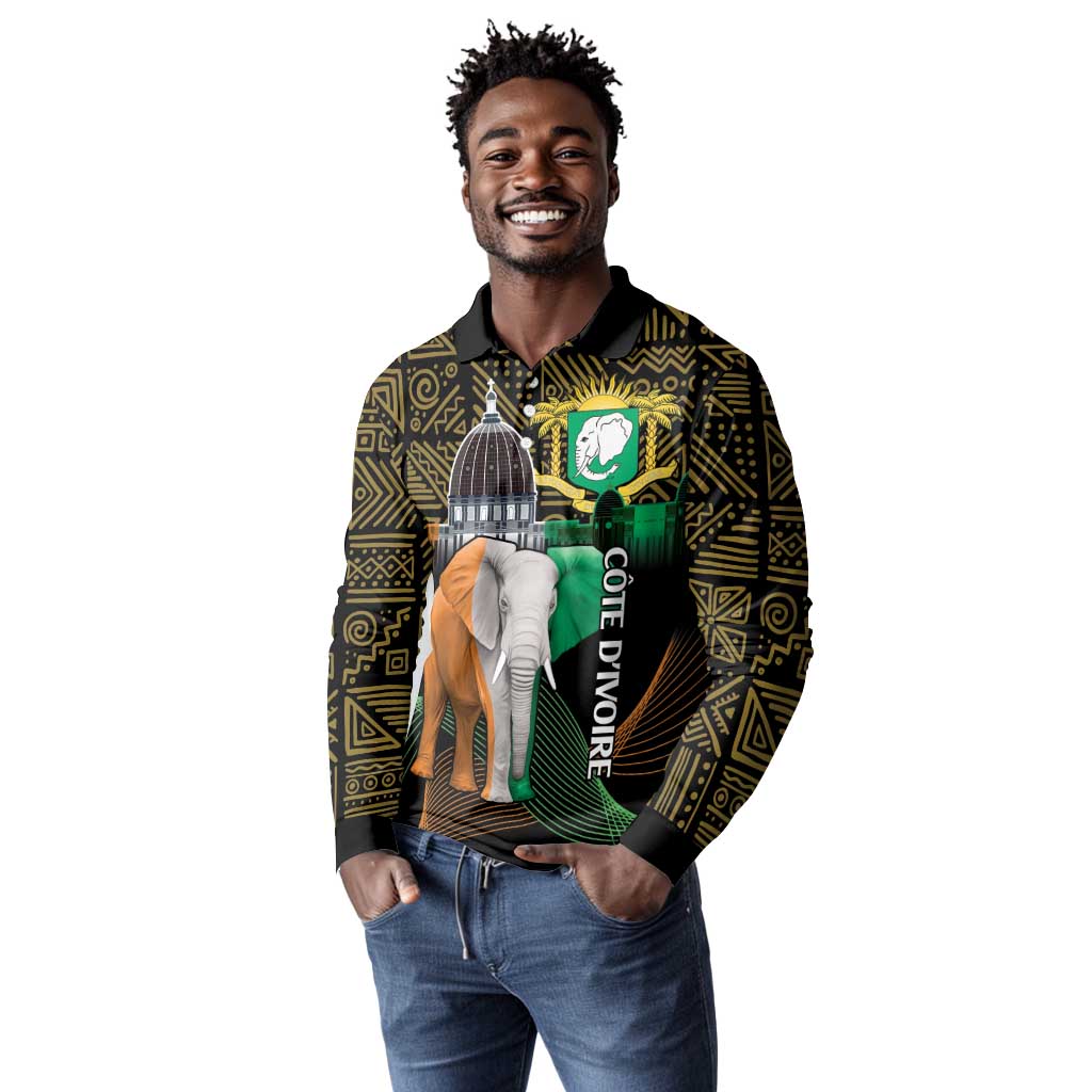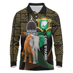 Personalized Cote dIvoire Independence Day Long Sleeve Polo Shirt Ivory Coast Elephant African Pattern