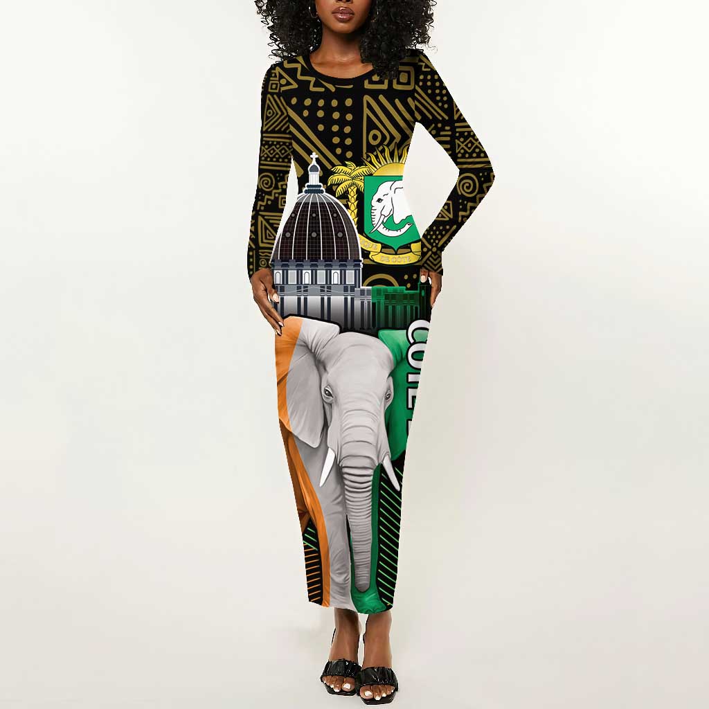 Personalized Cote dIvoire Independence Day Long Sleeve Bodycon Dress Ivory Coast Elephant African Pattern