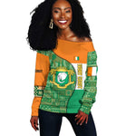 Ivory Coast Off Shoulder Sweater Elephant Crest and Tribal Pattern