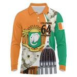 Personalized Ivory Coast Independence Day Long Sleeve Polo Shirt Ornithogalum Arabicum Happy 64 Years Anniversary