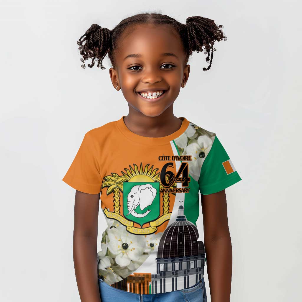Personalized Ivory Coast Independence Day Kid T shirt Ornithogalum Arabicum Happy 64 Years Anniversary