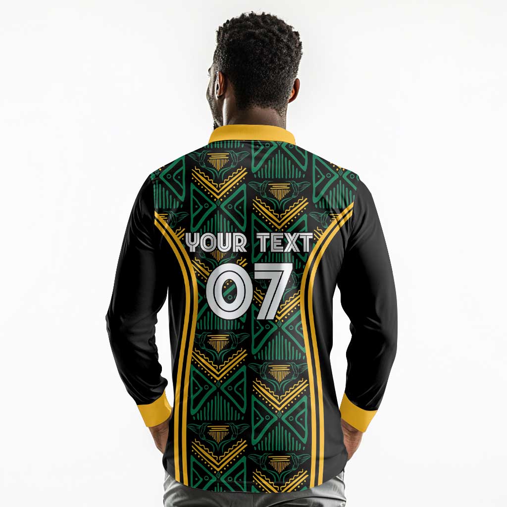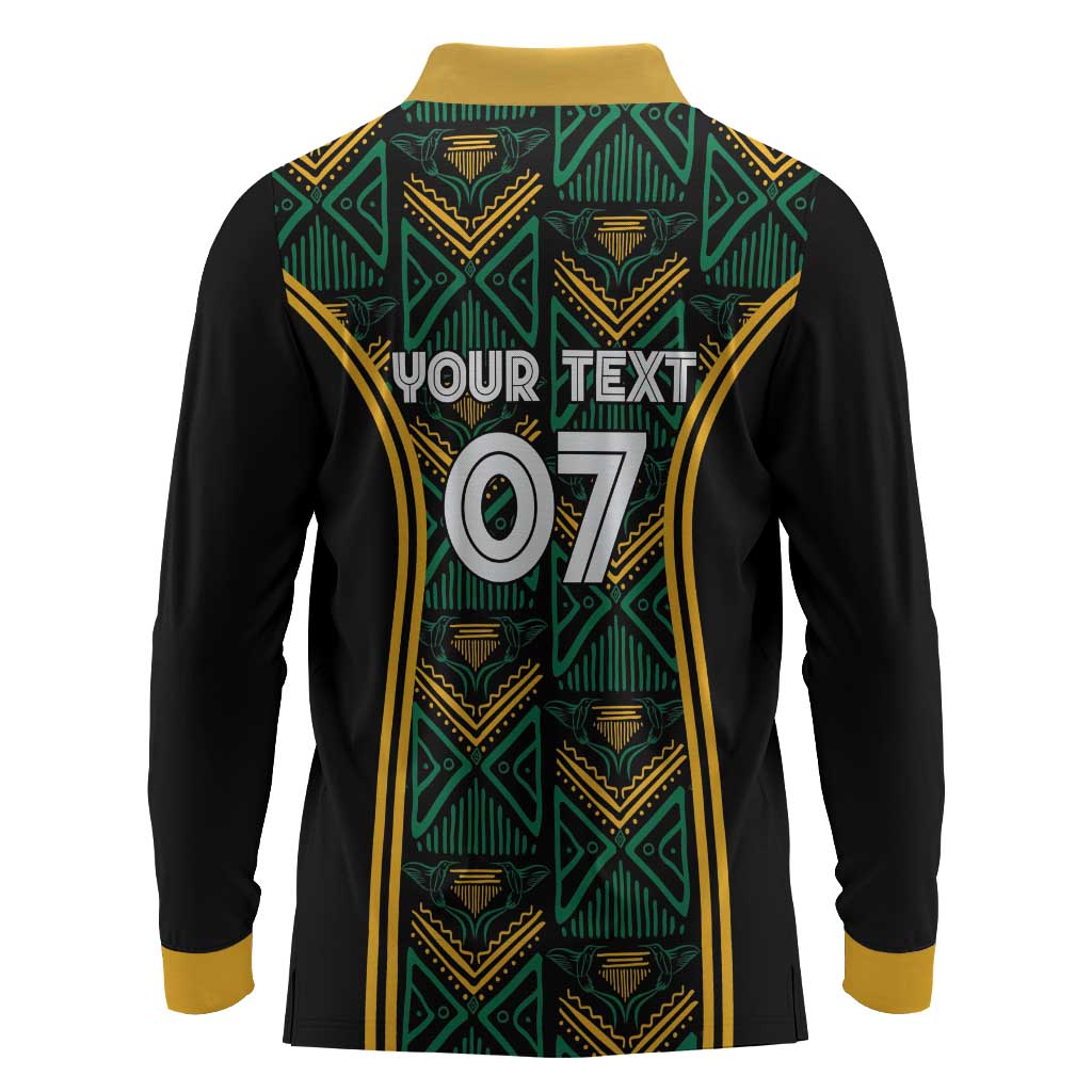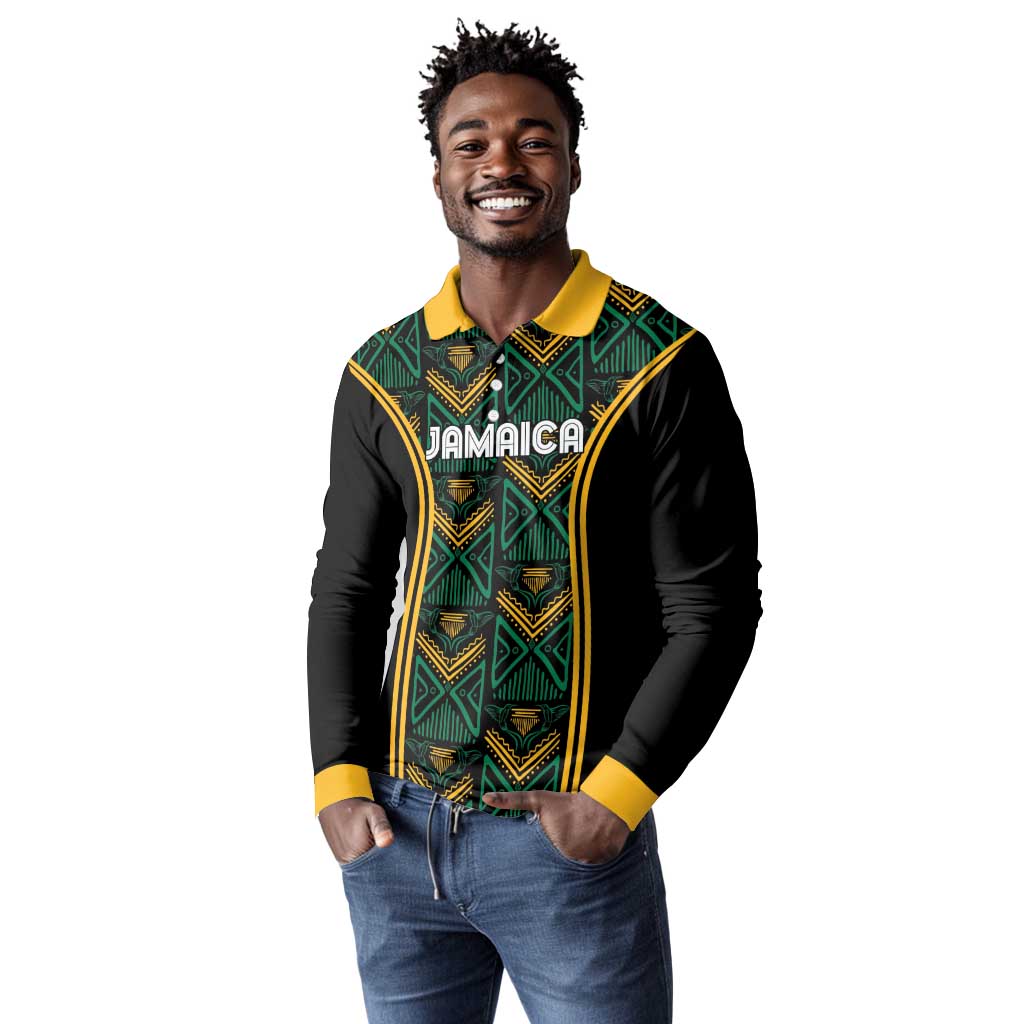 Afro-Jamaica Custom Long Sleeve Polo Shirt Reggae Boyz Ethnic Motifs