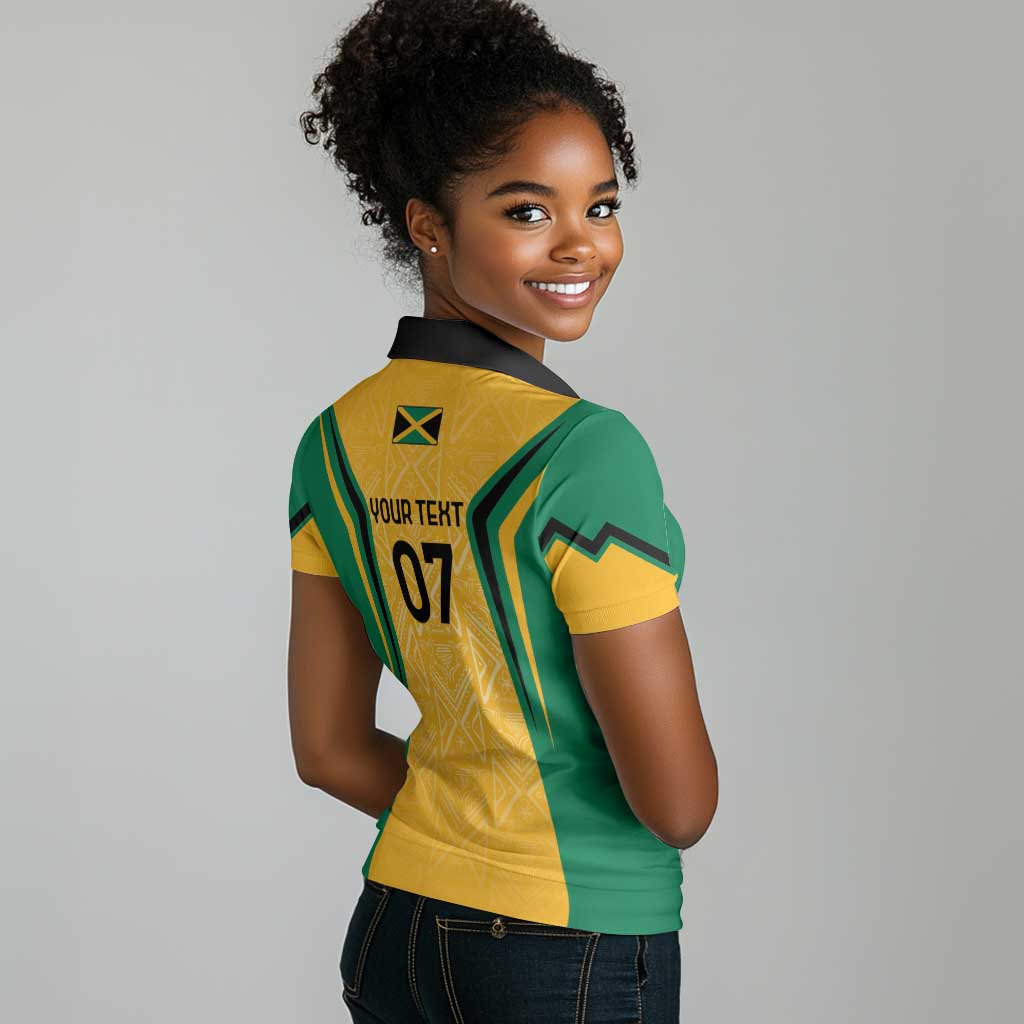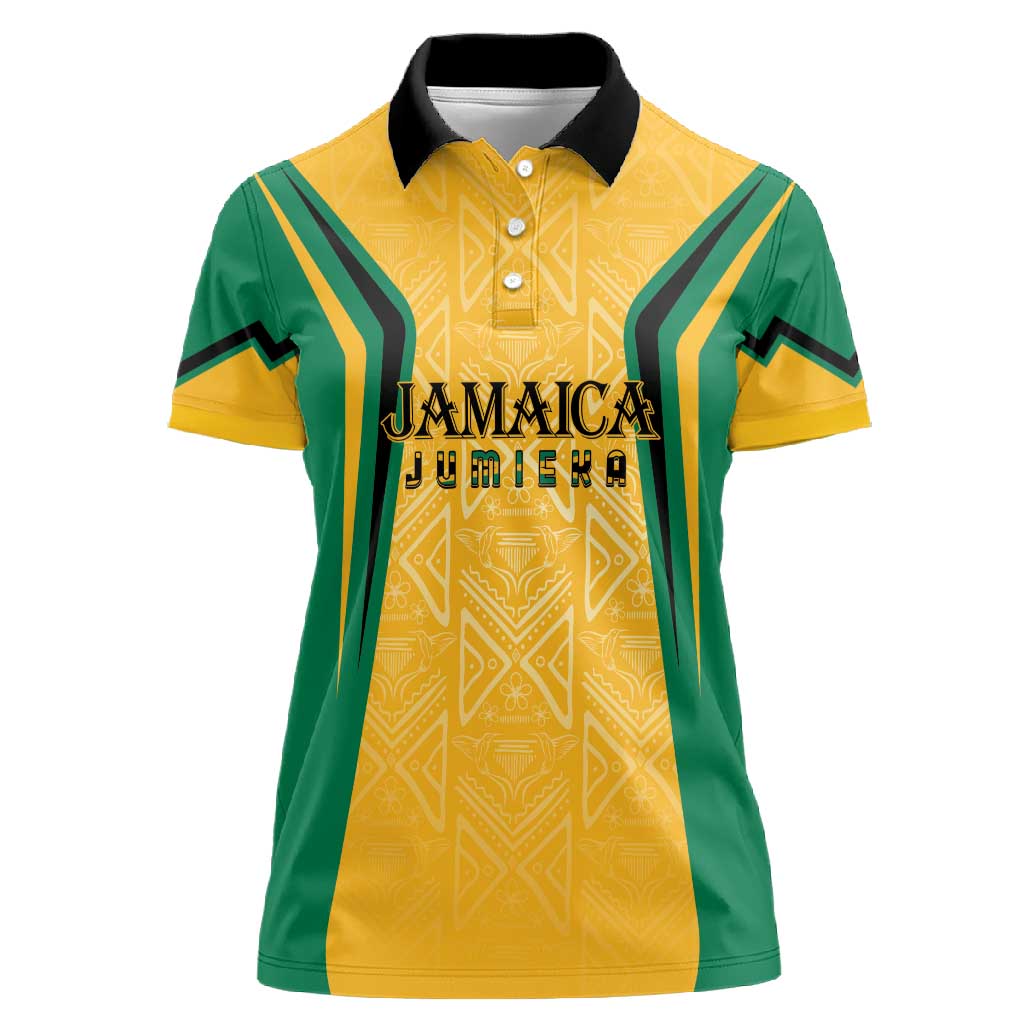 Afro-Jamaica Custom Women Polo Shirt Golden Ethnic Motifs