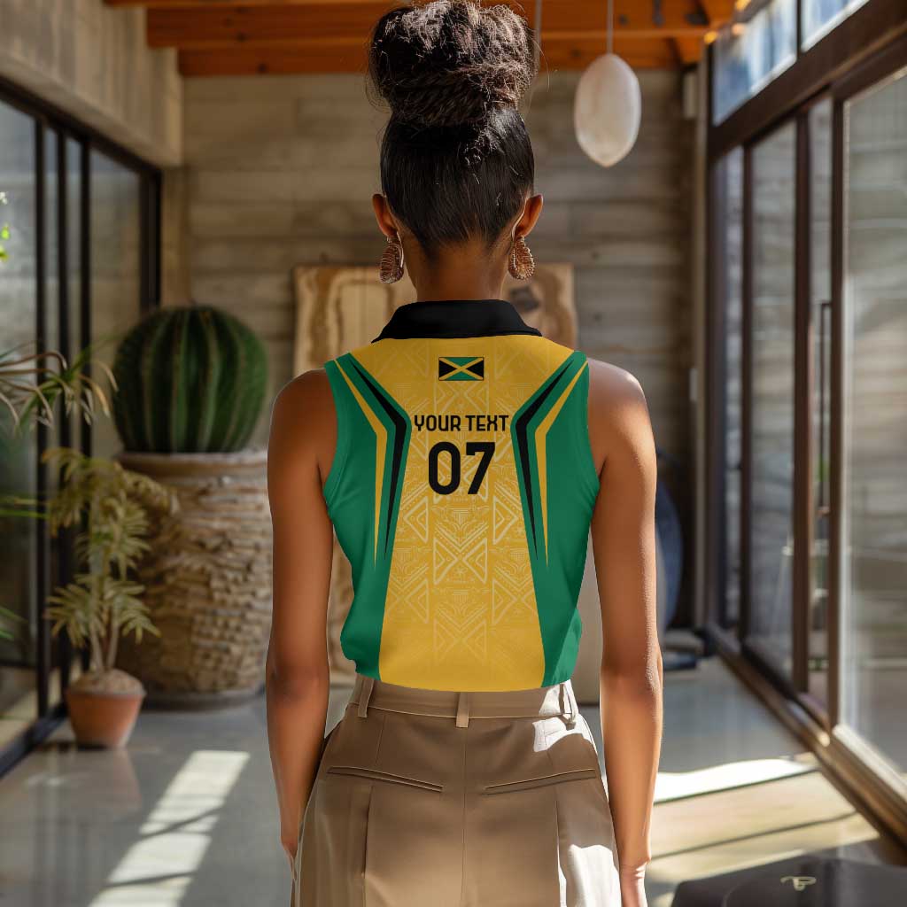 Afro-Jamaica Custom Women Sleeveless Polo Shirt Golden Ethnic Motifs