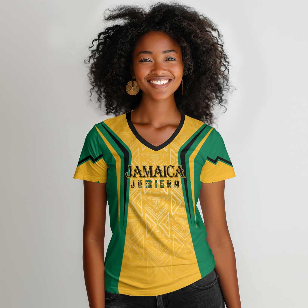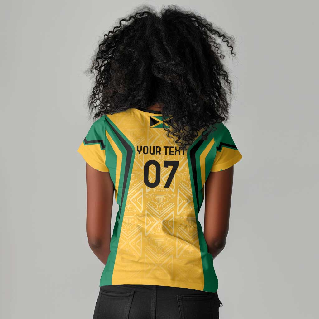 Afro-Jamaica Custom Women V-Neck T-Shirt Golden Ethnic Motifs