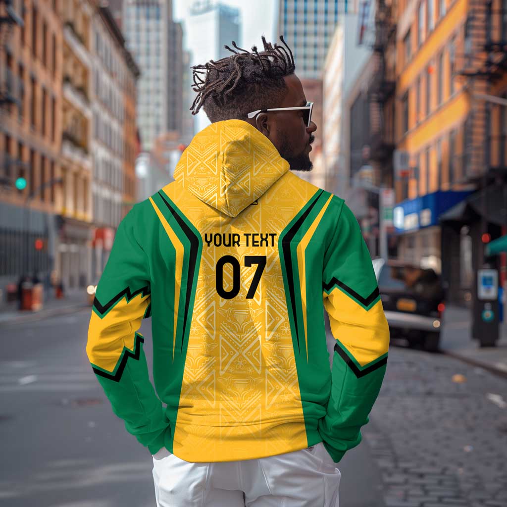 Afro-Jamaica Custom Zip Hoodie Golden Ethnic Motifs