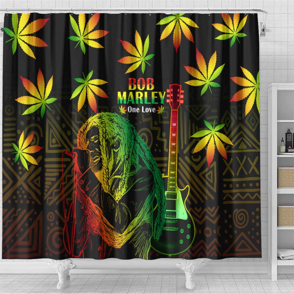 Afro Jamaica Legend Bob Day Shower Curtain One Love Jamaican Reggae African Pattern
