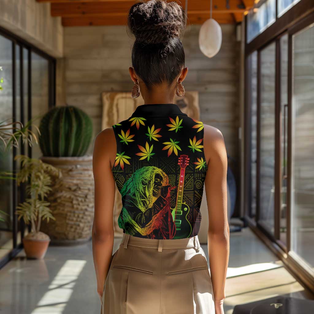 Afro Jamaica Legend Bob Day Women Sleeveless Polo Shirt One Love Jamaican Reggae African Pattern