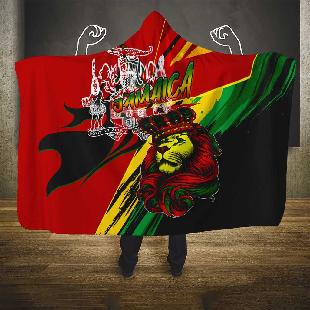 Afro Jamaica Lion Hooded Blanket Coat Of Arms Rastafarianism