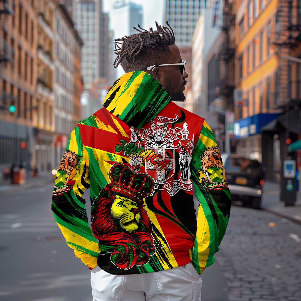 Afro Jamaica Lion Zip Hoodie Coat Of Arms Rastafarianism