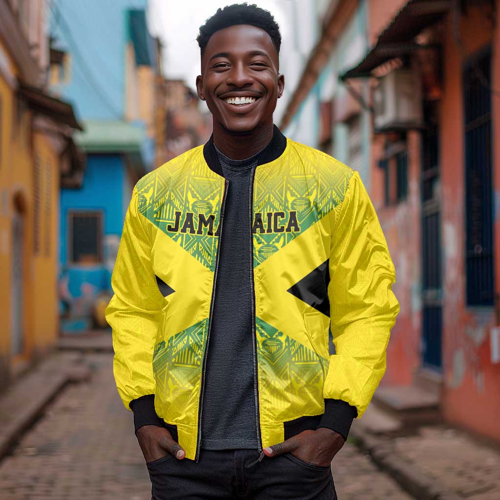 Afro-Jamaicans Custom Bomber Jacket Reggae Boyz With Traditional Pattern