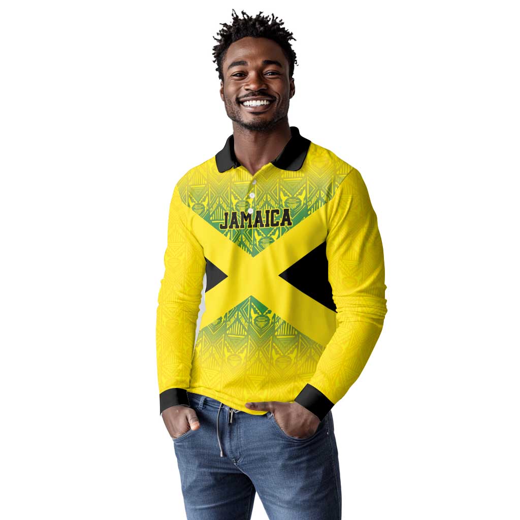Afro-Jamaicans Custom Long Sleeve Polo Shirt Reggae Boyz With Traditional Pattern