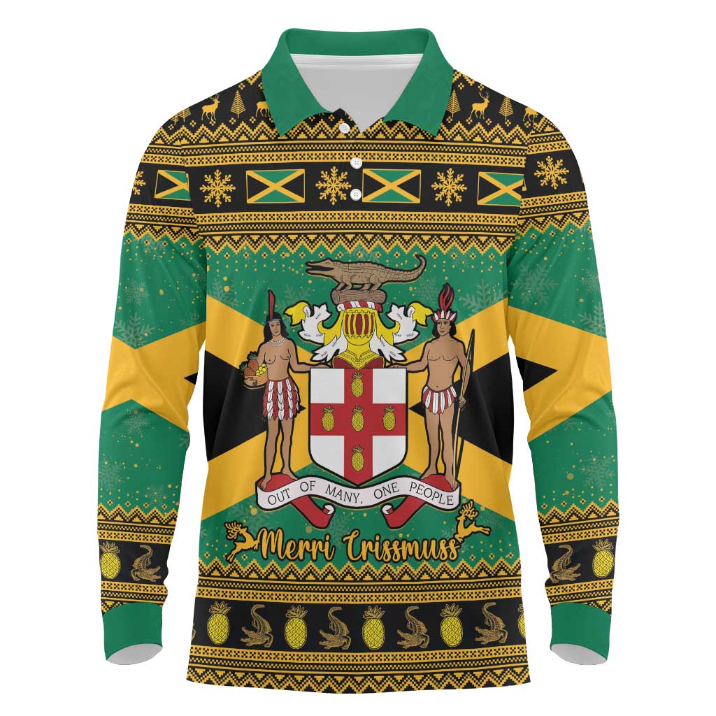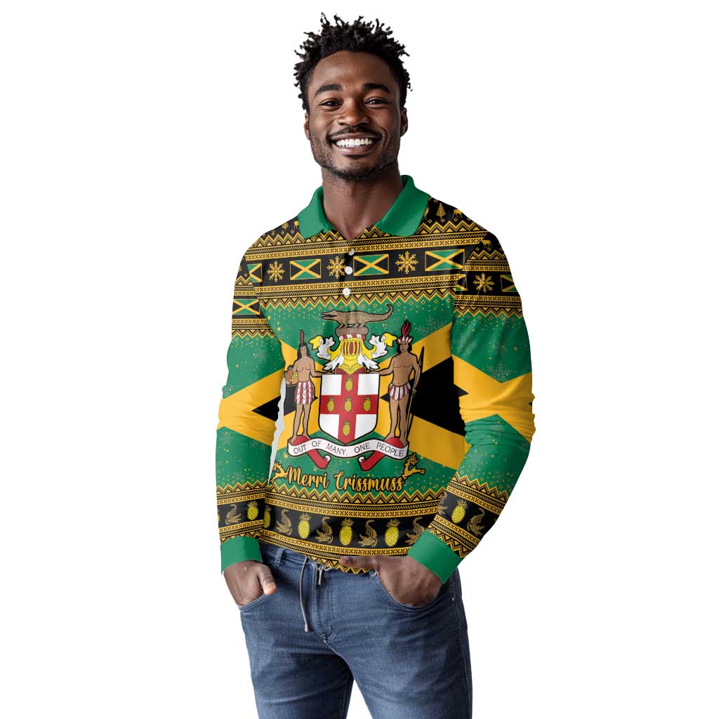 Afro-Jamaicans Long Sleeve Polo Shirt Coat Of Arms - Merry Christmas