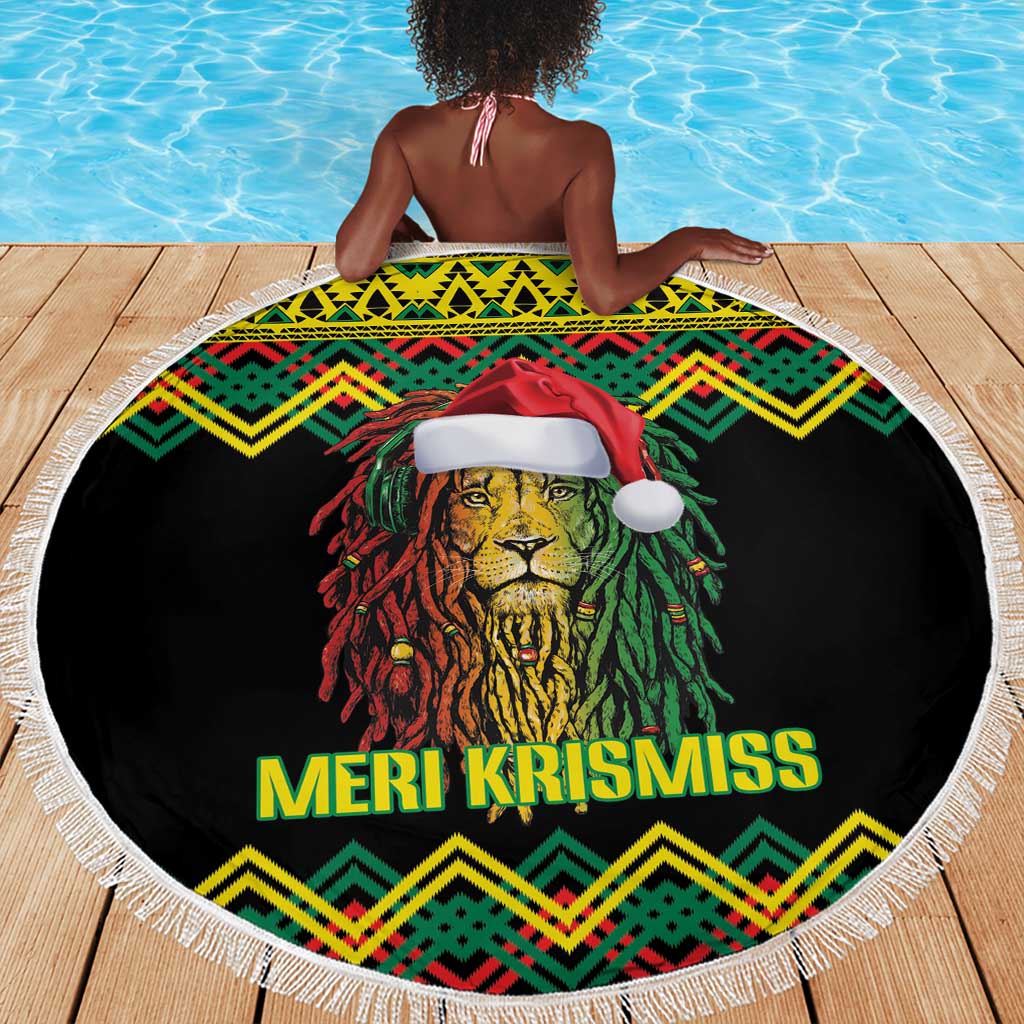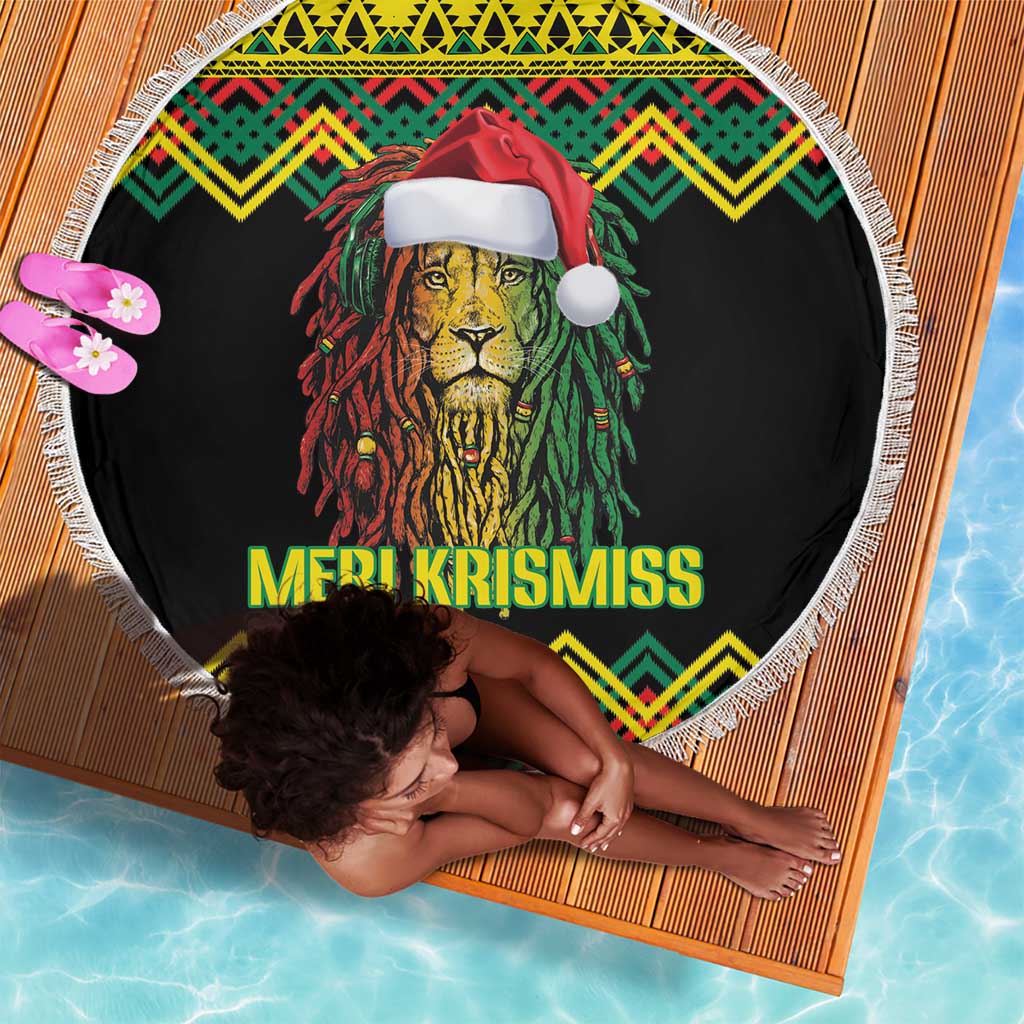 Black Jamaican Christmas Beach Blanket Reggae Lion With Kente Pattern
