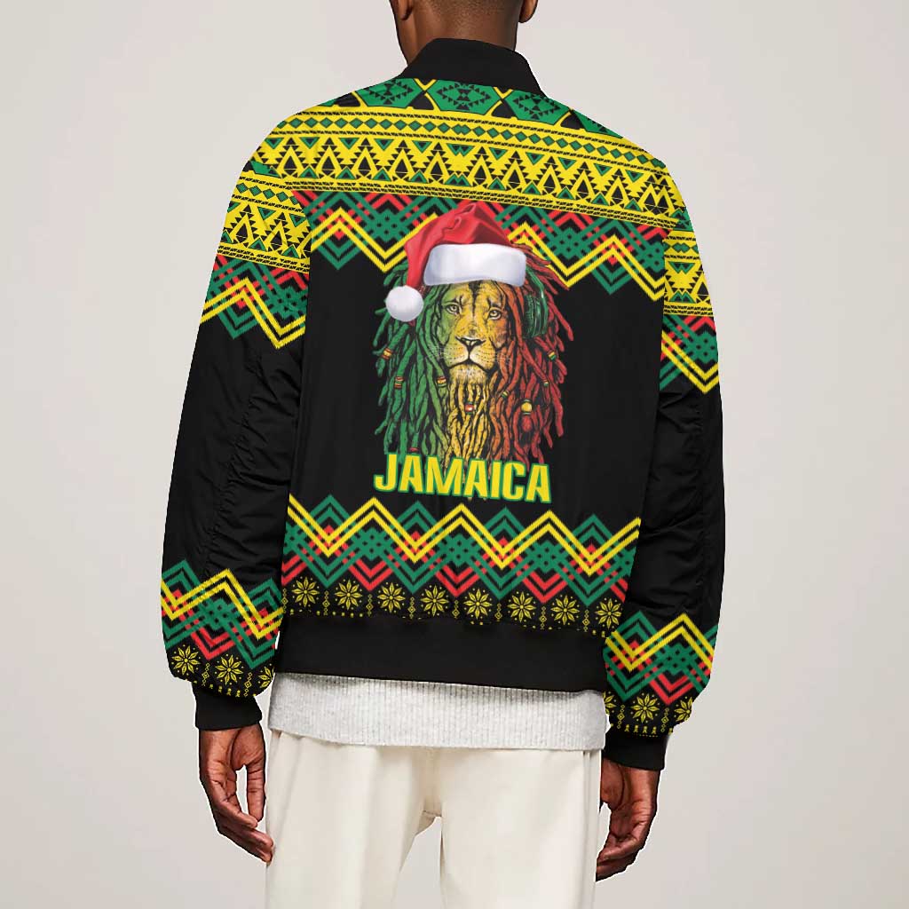 Black Jamaican Christmas Bomber Jacket Reggae Lion With Kente Pattern