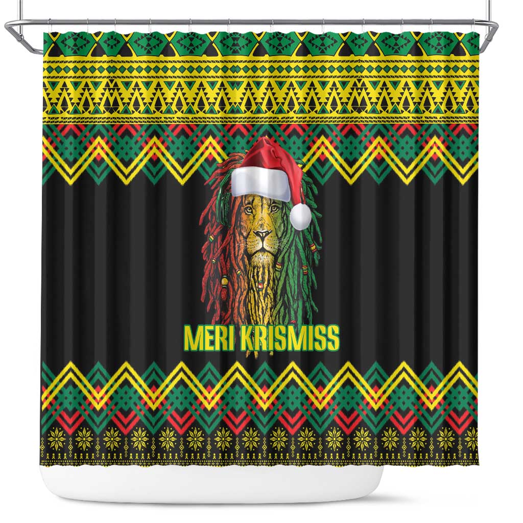 Black Jamaican Christmas Shower Curtain Reggae Lion With Kente Pattern