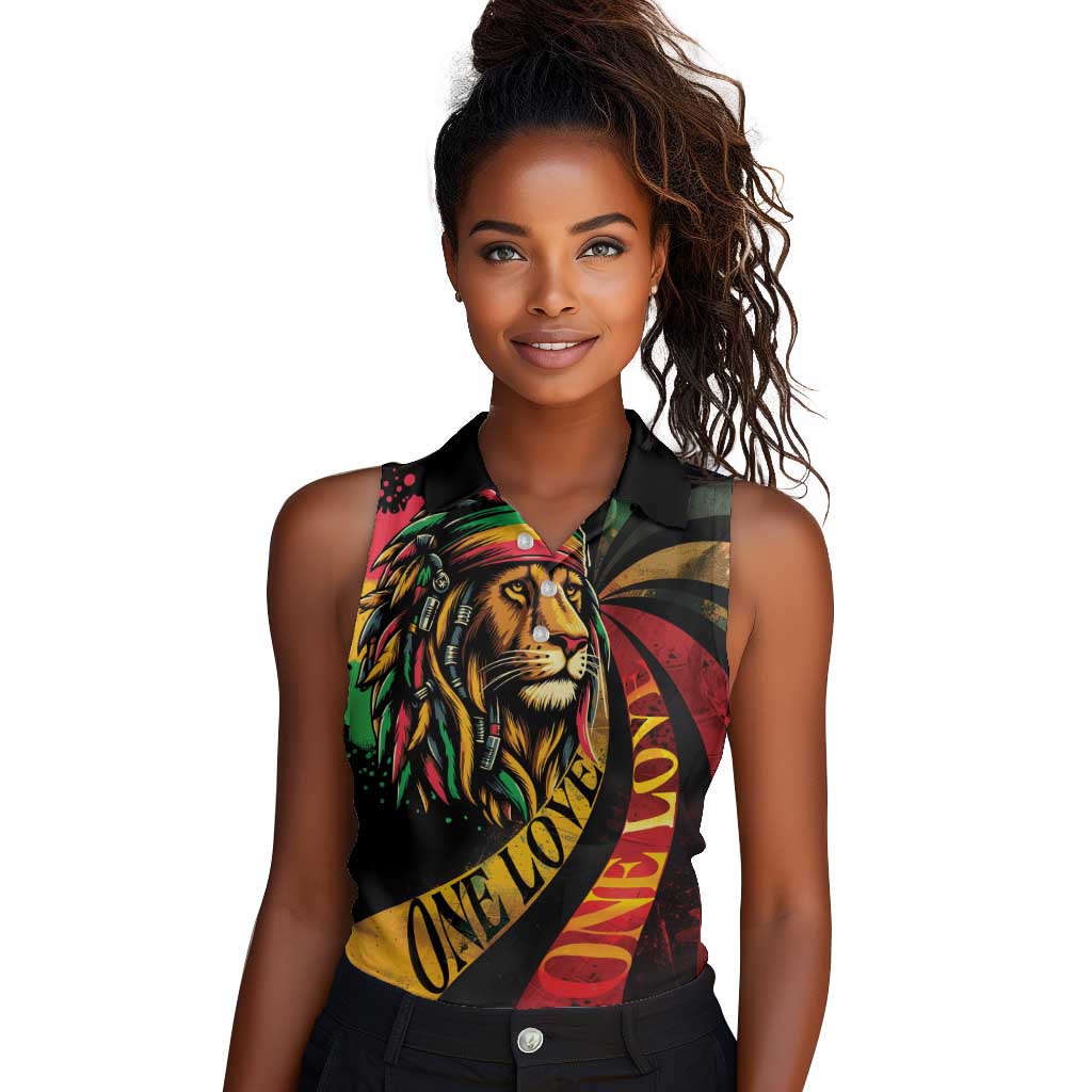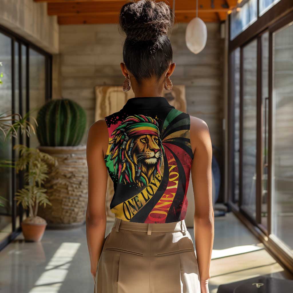 Black Jamaican Women Sleeveless Polo Shirt Rastafarian Lion One Love