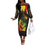 Jamaica Reggae King Off The Shoulder Long Sleeve Dress Sketch Style One Love