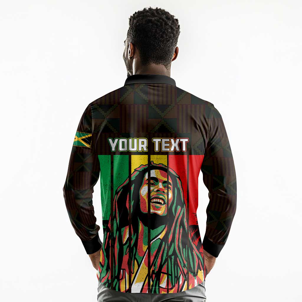 Personalised Jamaica Long Sleeve Polo Shirt Reggae Festival Bob Marley Abstract Portrait