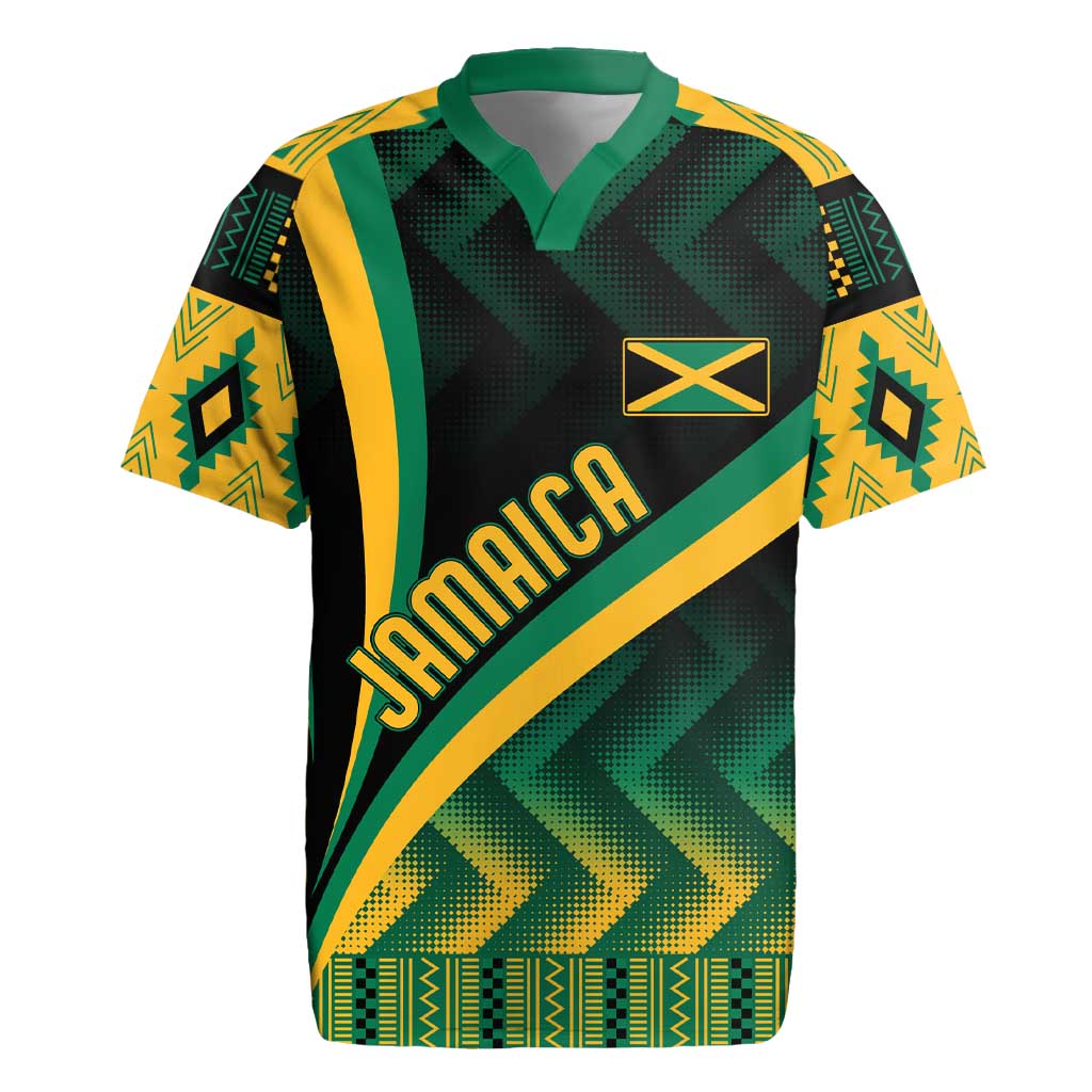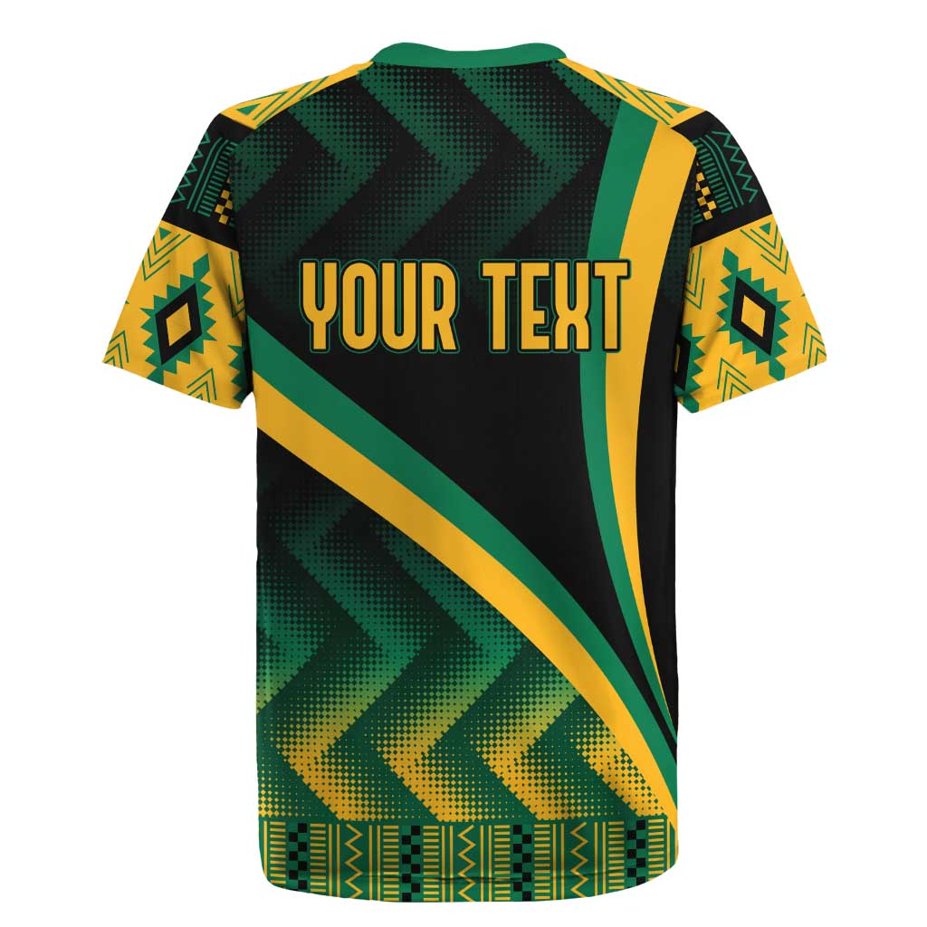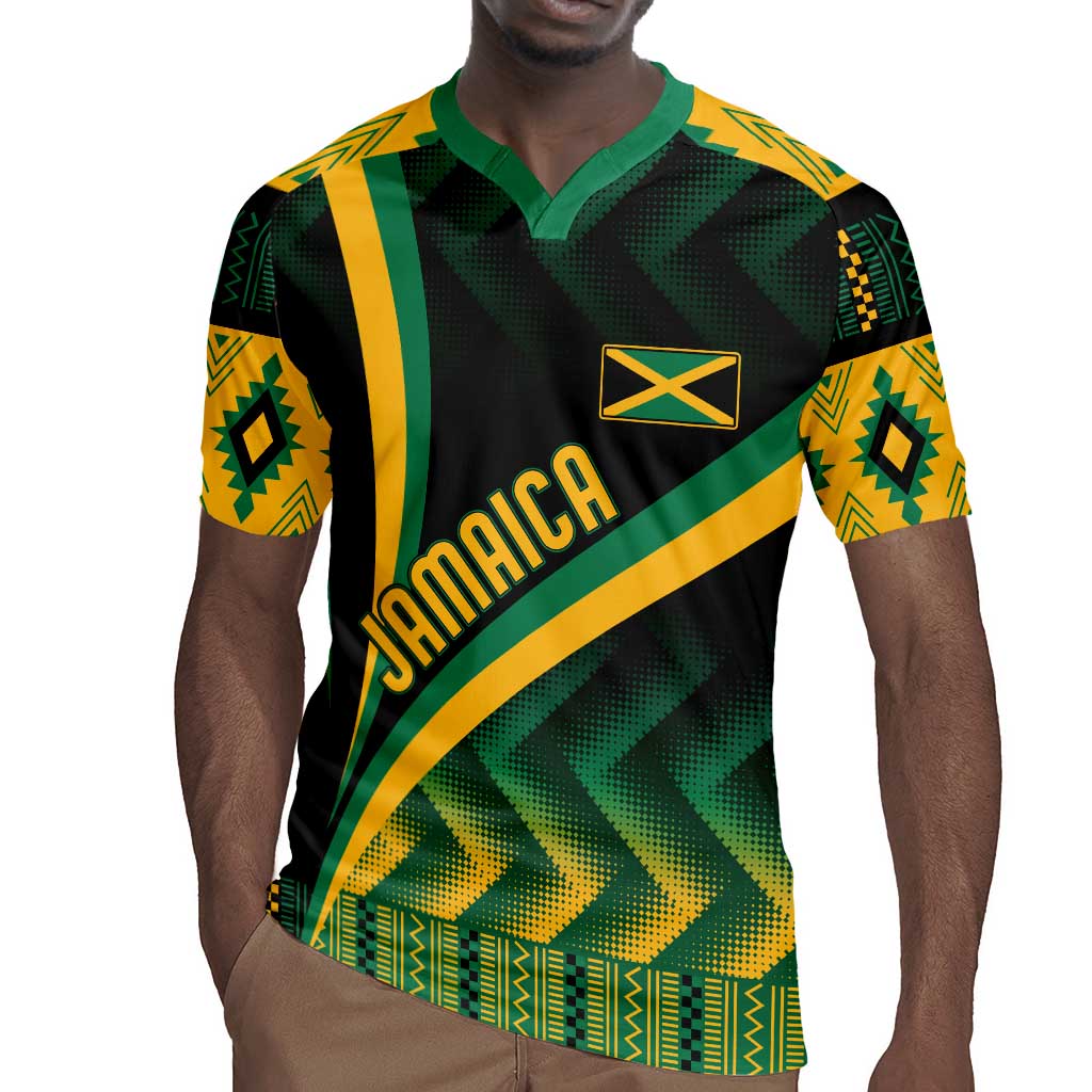 Personalised Jamaica Rugby Jersey Kente Pattern Basic - Black