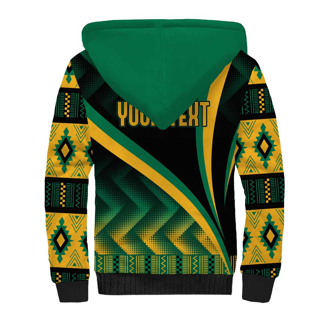 Personalised Jamaica Sherpa Hoodie Kente Pattern Basic - Black
