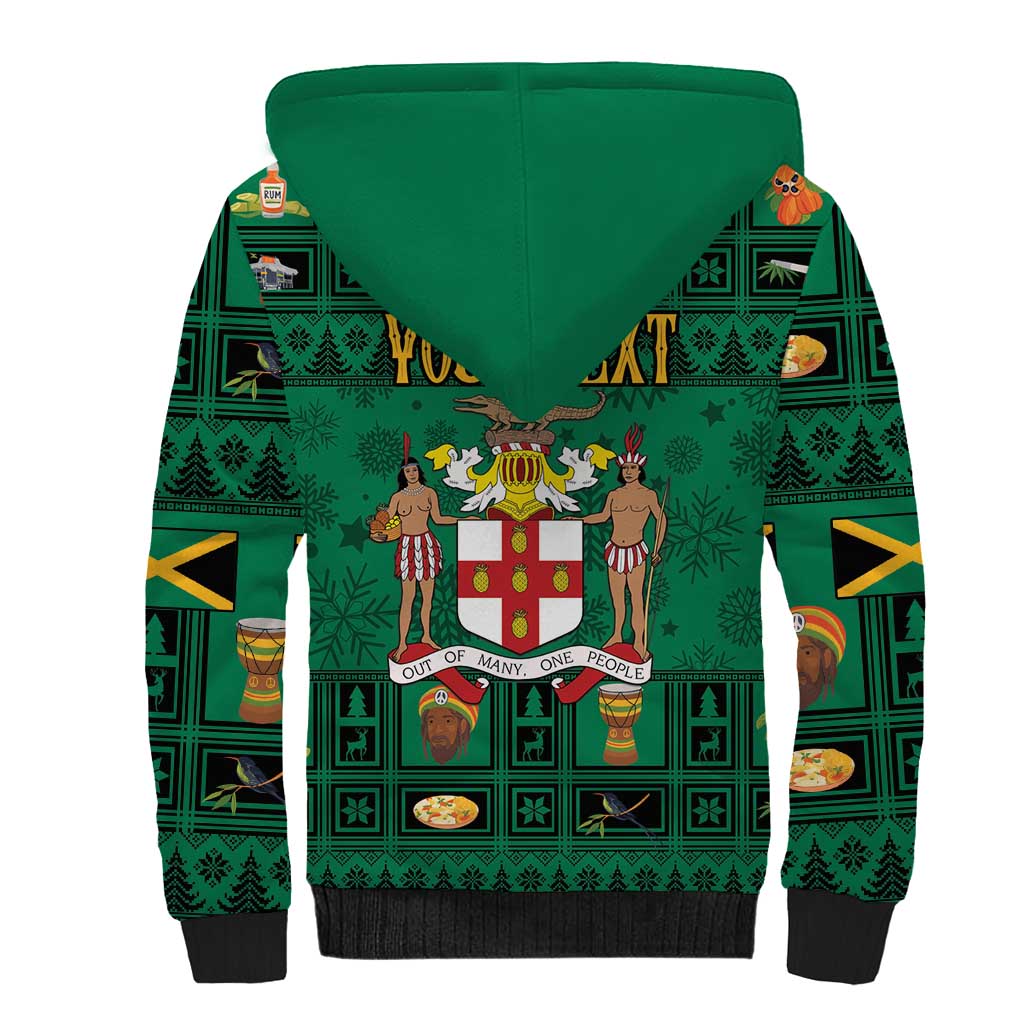 Personalized Afro-Jamaicans Merri Crissmuss Sherpa Hoodie Coat Of Arms - Xmas