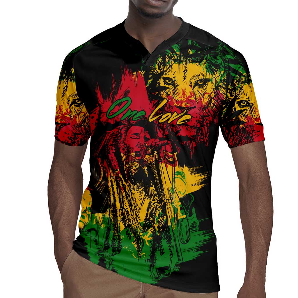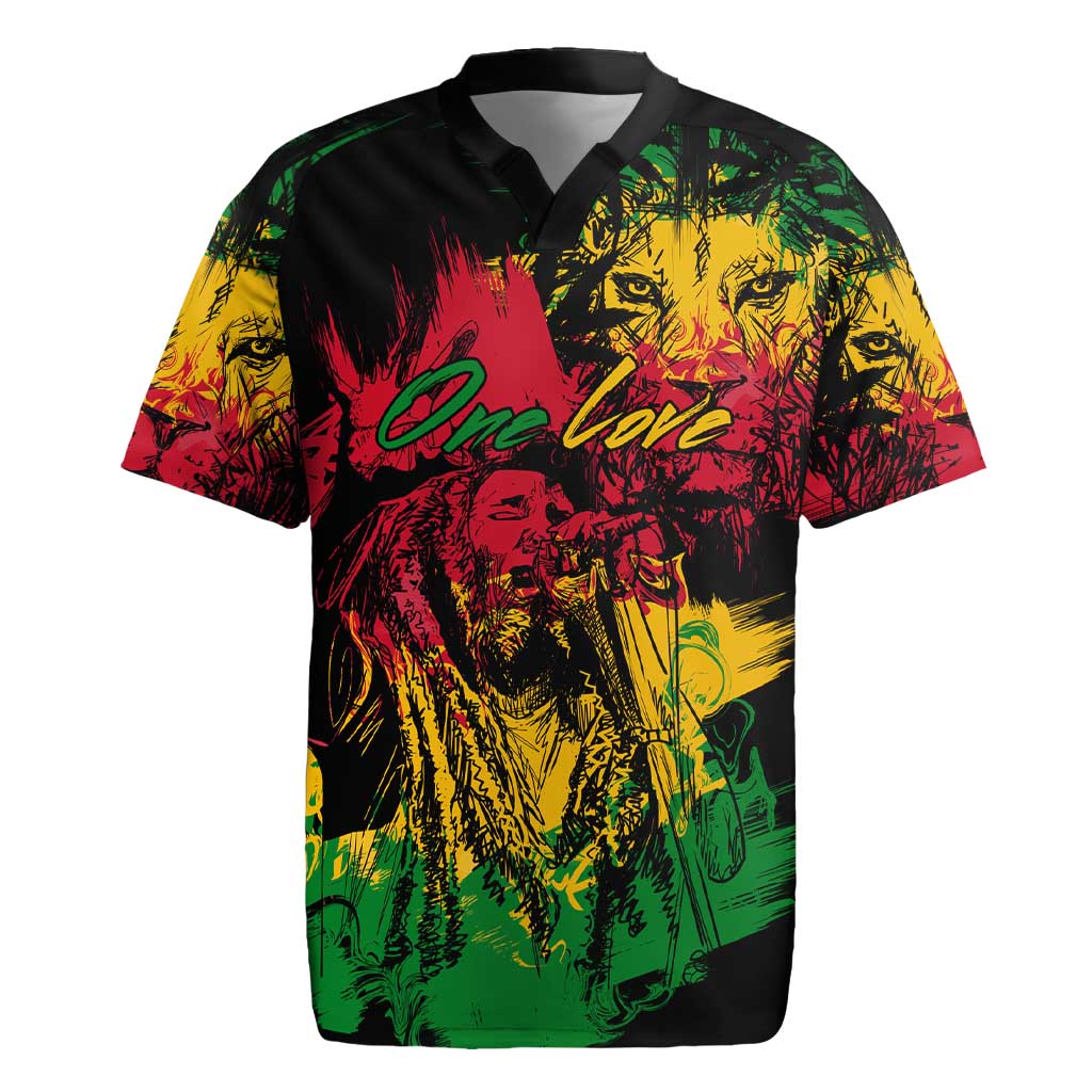 Rastafarian Lion Legend Bob Rugby Jersey Black Jamaican Reggae Festival Sketch Portrait