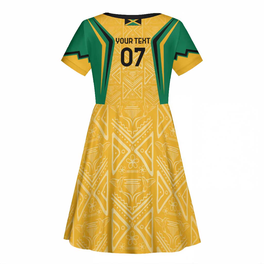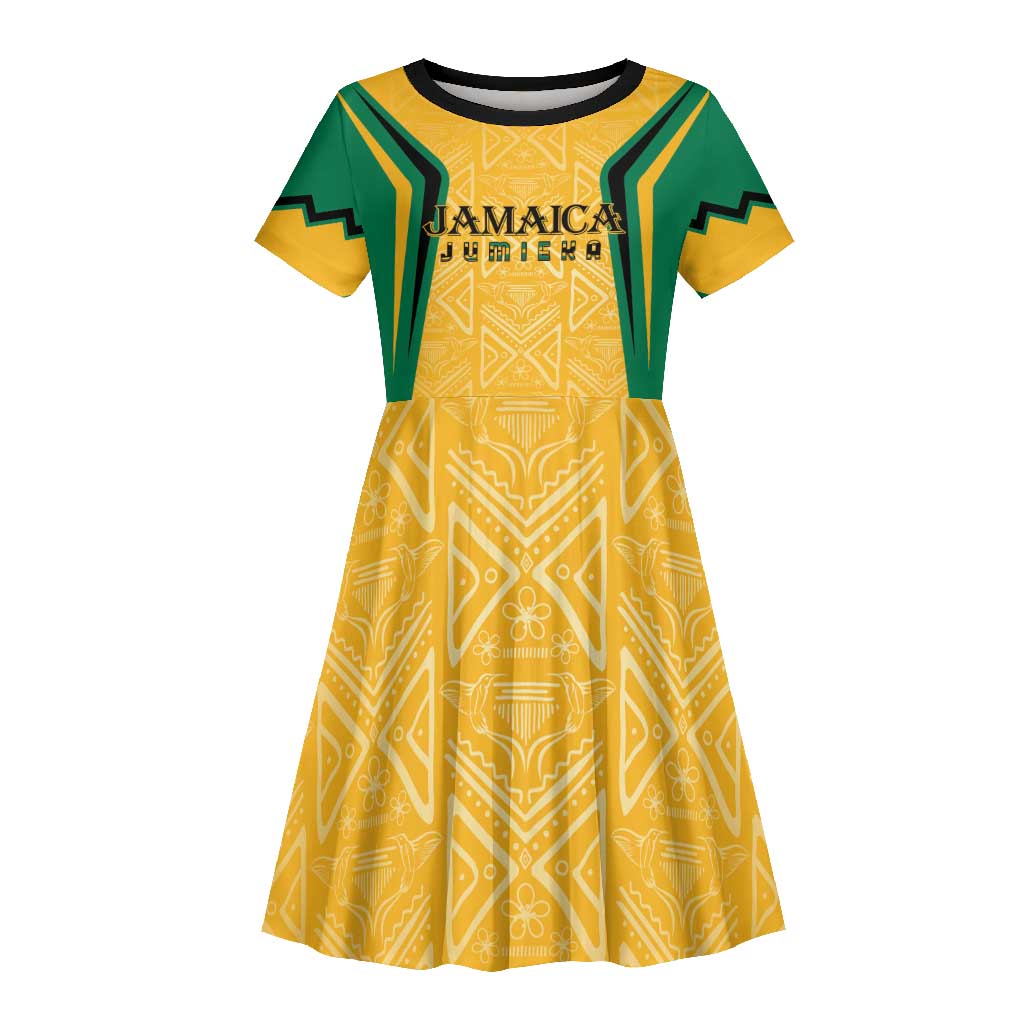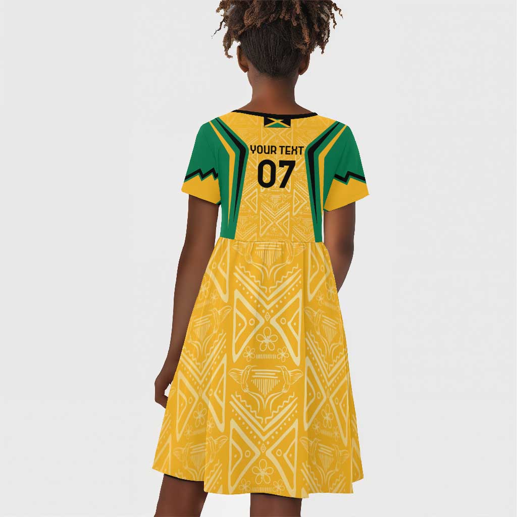 Afro-Jamaica Custom Kid Short Sleeve Dress Golden Ethnic Motifs LT7