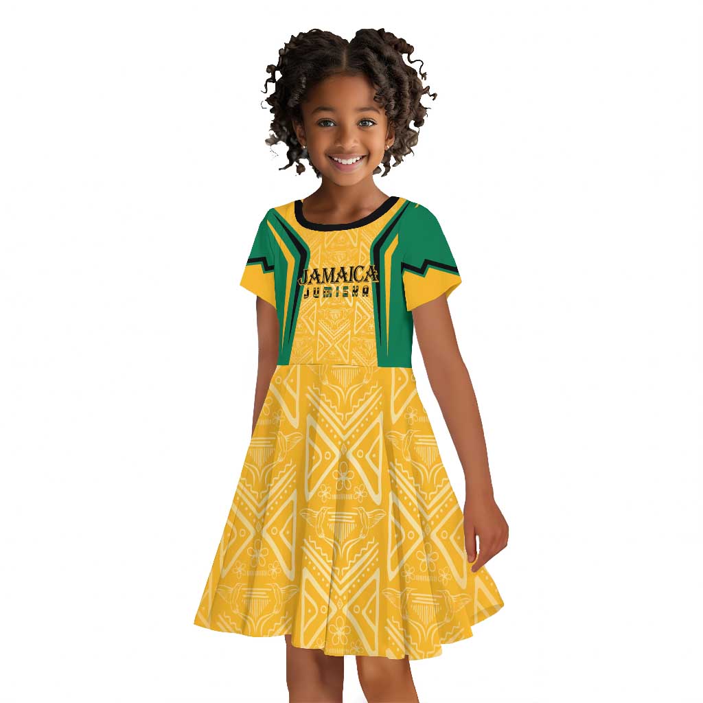 Afro-Jamaica Custom Kid Short Sleeve Dress Golden Ethnic Motifs