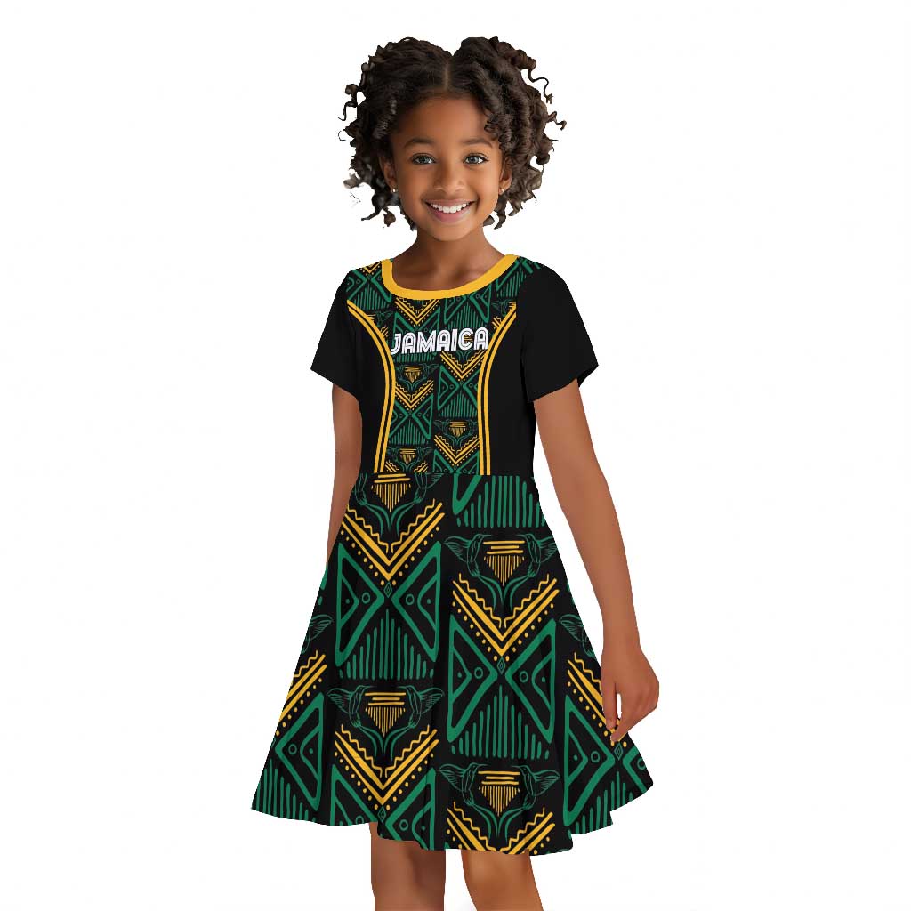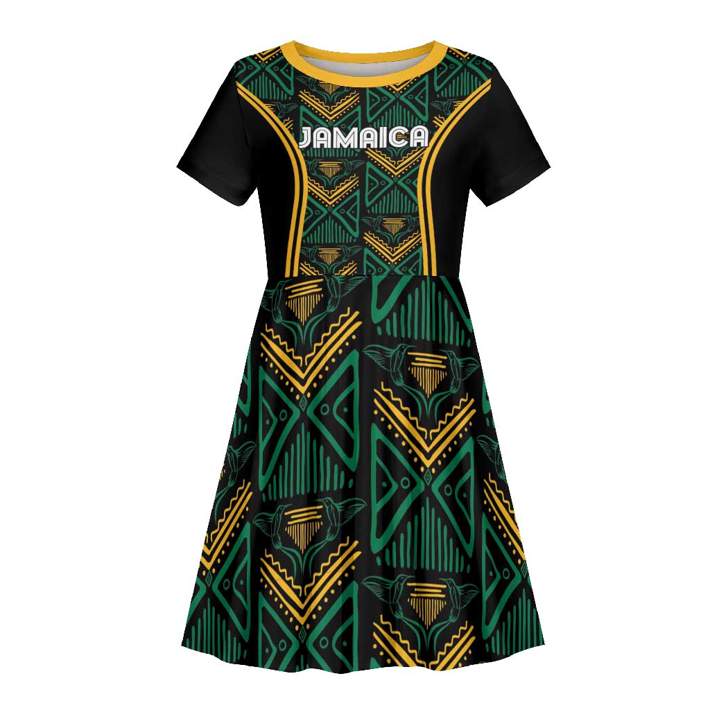 Afro-Jamaica Custom Kid Short Sleeve Dress Reggae Boyz Ethnic Motifs LT7